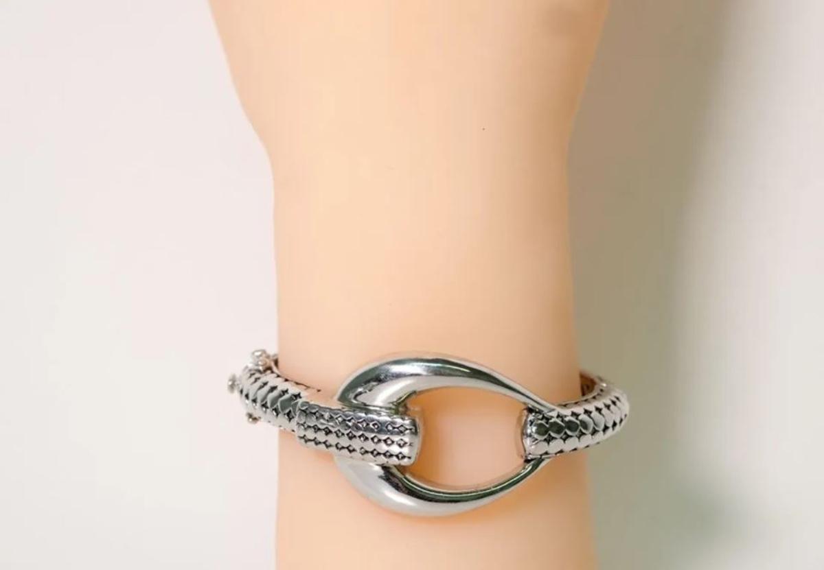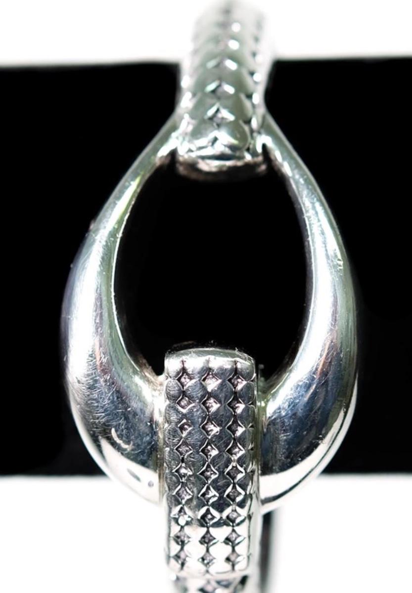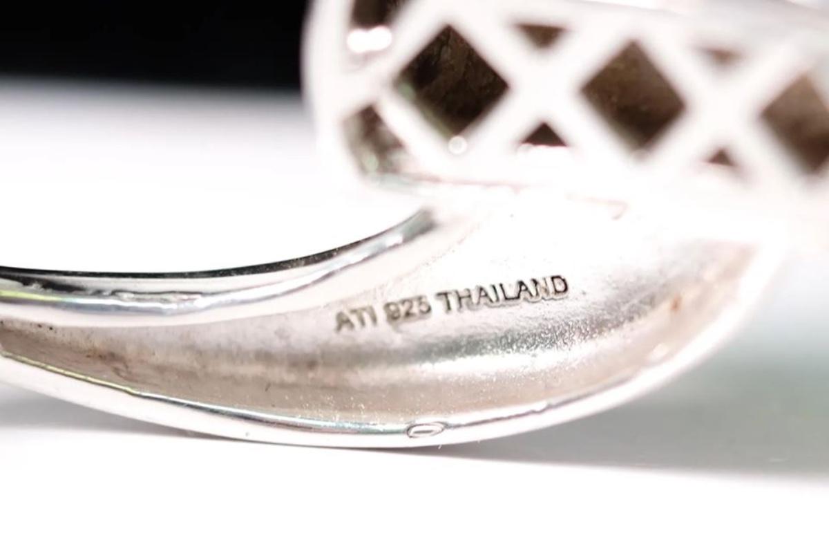 Sterling silver modernist bracelet. Stamped 925 THAILAND. Approx. interior length 2.37 inches, overall weight 60 grams.
