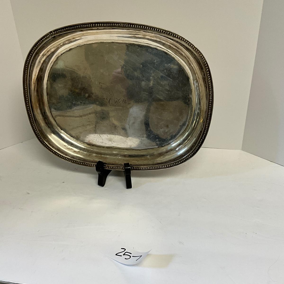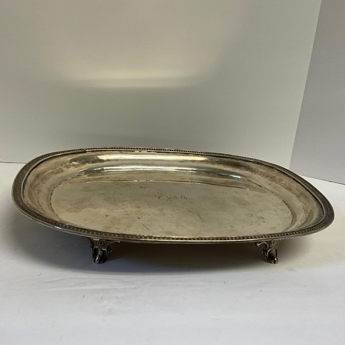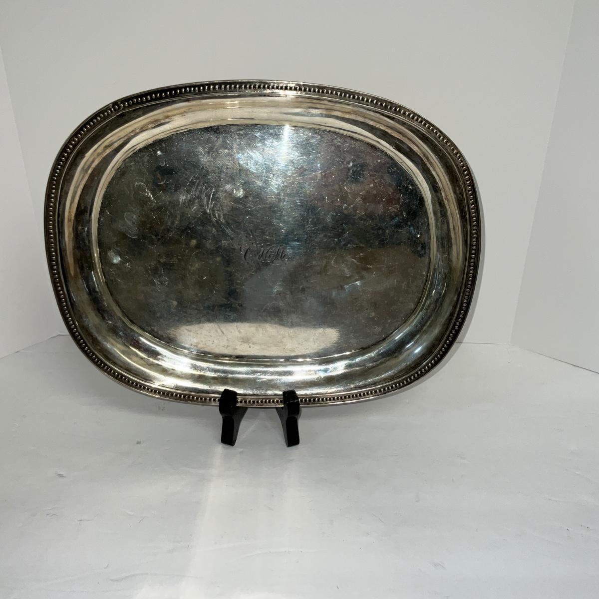 Sterling Silver Monogrammed Footed Charleston SC Silversmith J Mood Oval Platter, 8" x 10", as pictured