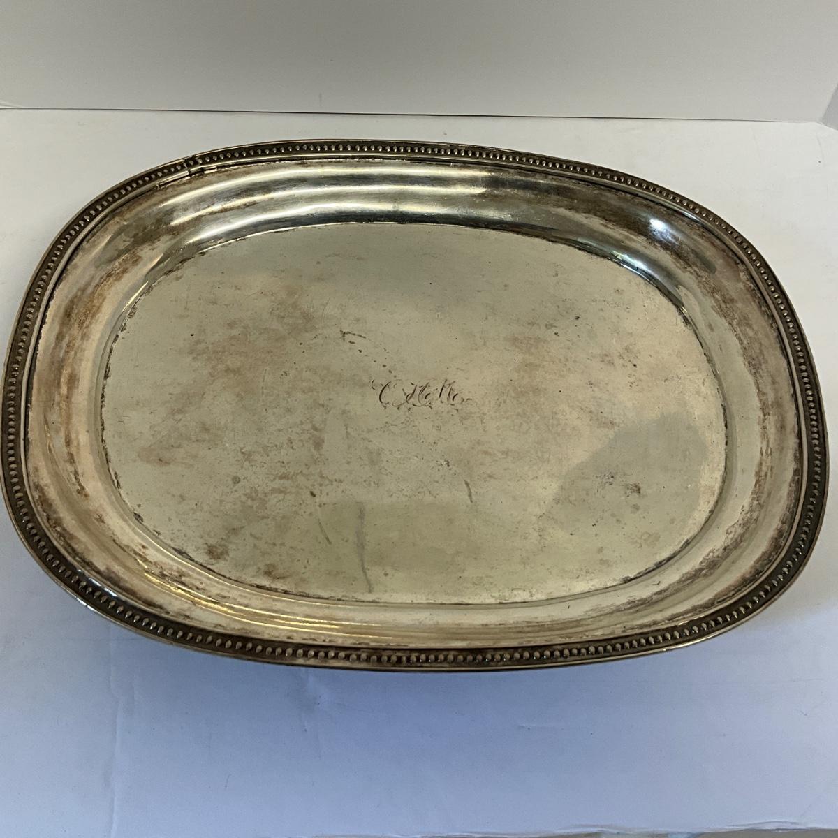 Antique Sterling Silver Monogrammed Footed Charleston SC Silversmith J Mood Oval Platter