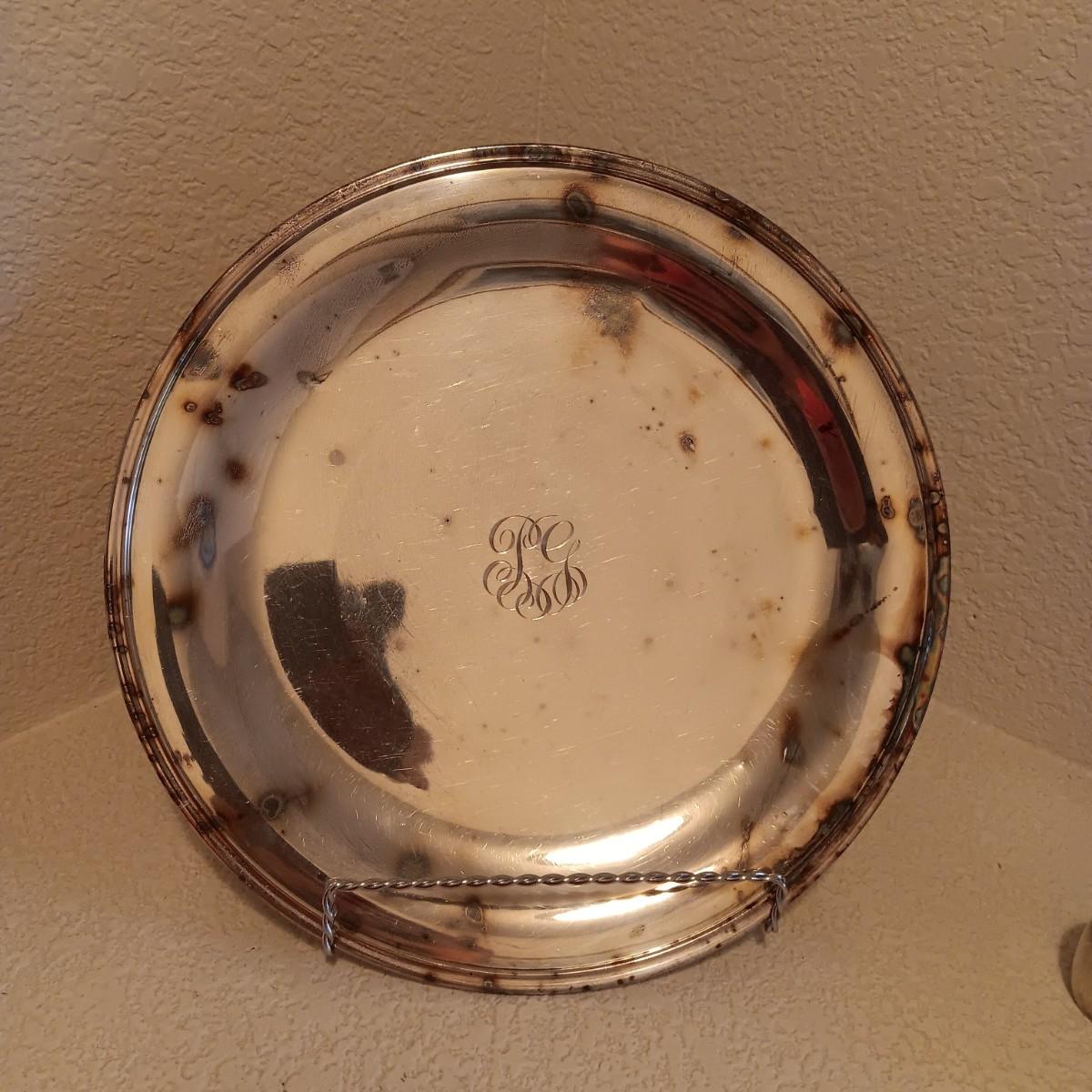 STERLING SILVER MONOGRAMMED PLATTER 636g