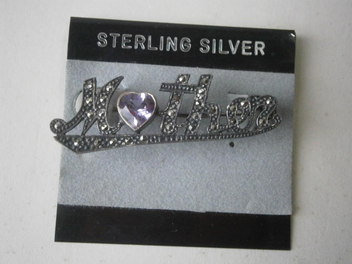 Sterling Silver "Mother" Pin, 1 7/8 in. long, still on original card.