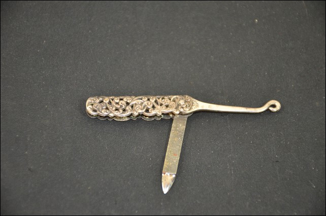 sterling silver nail/emery kit, antique, monogramed, 8.7 grams (though the Emory