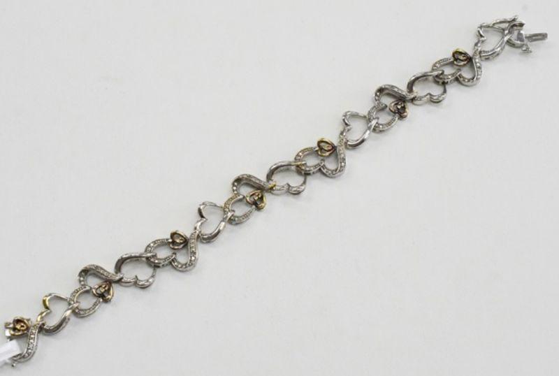 Sterling Silver & Natural Diamond Hearts Bracelet