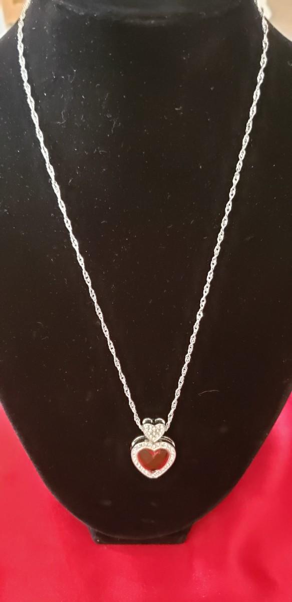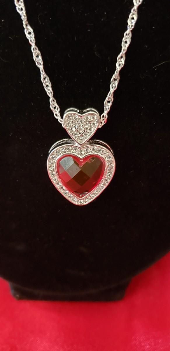 Sterling silver natural stoneruby and diamond   heart pendant and necklace