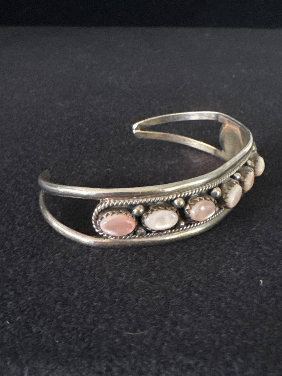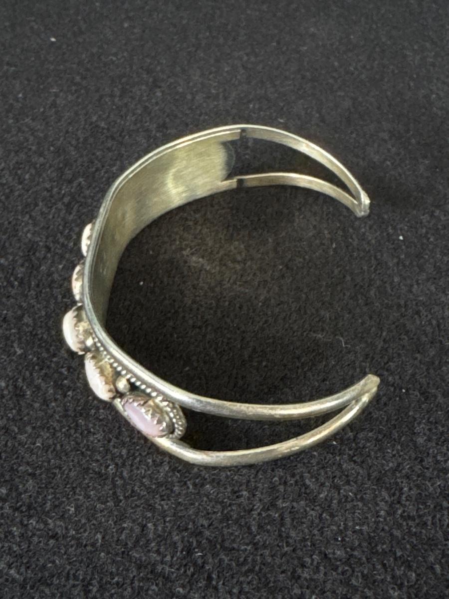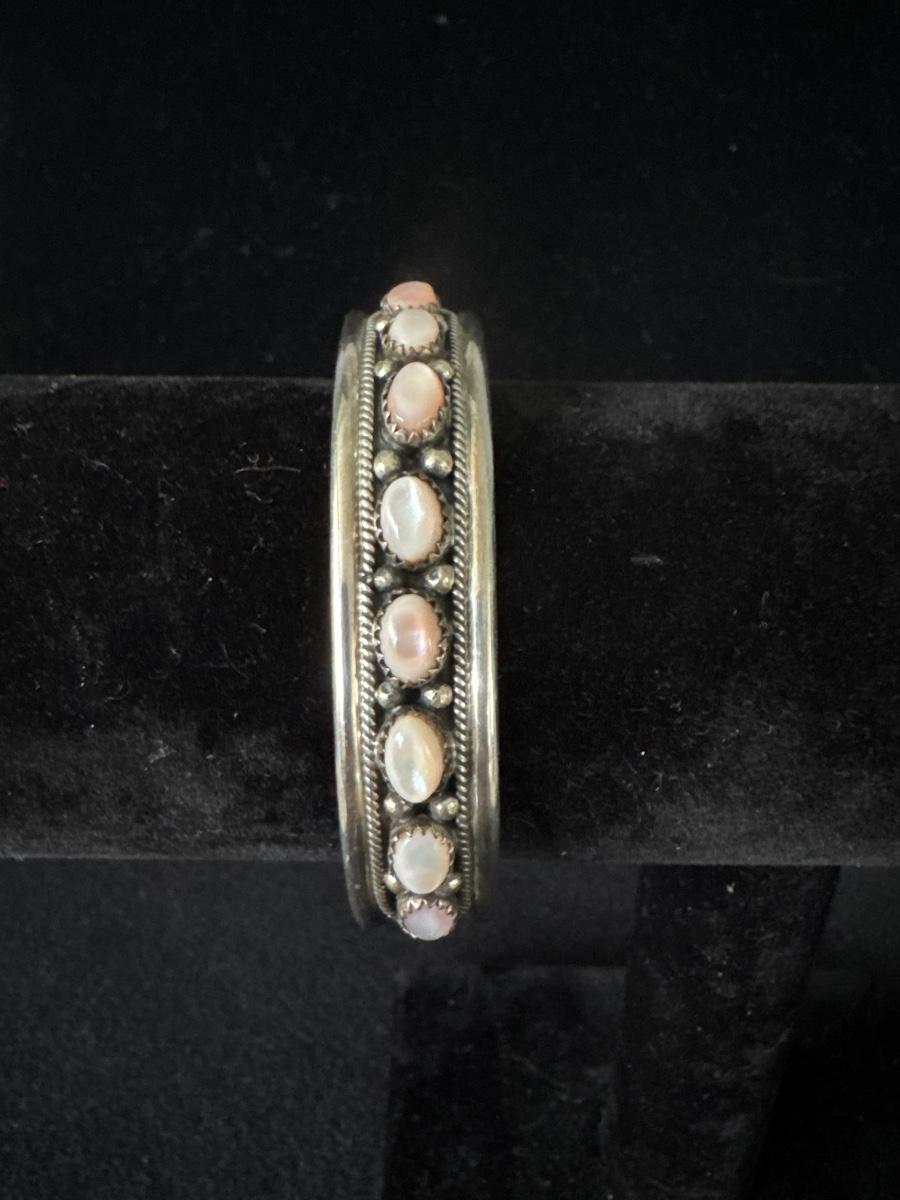 Sterling Silver Navajo Bracelet 925 Natural Pink Mussel Native American Signed FA