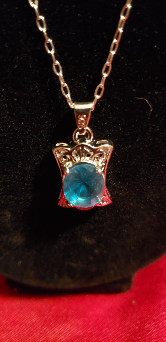 Sterling silver Necklace and pendant natural gemstone aquamarine