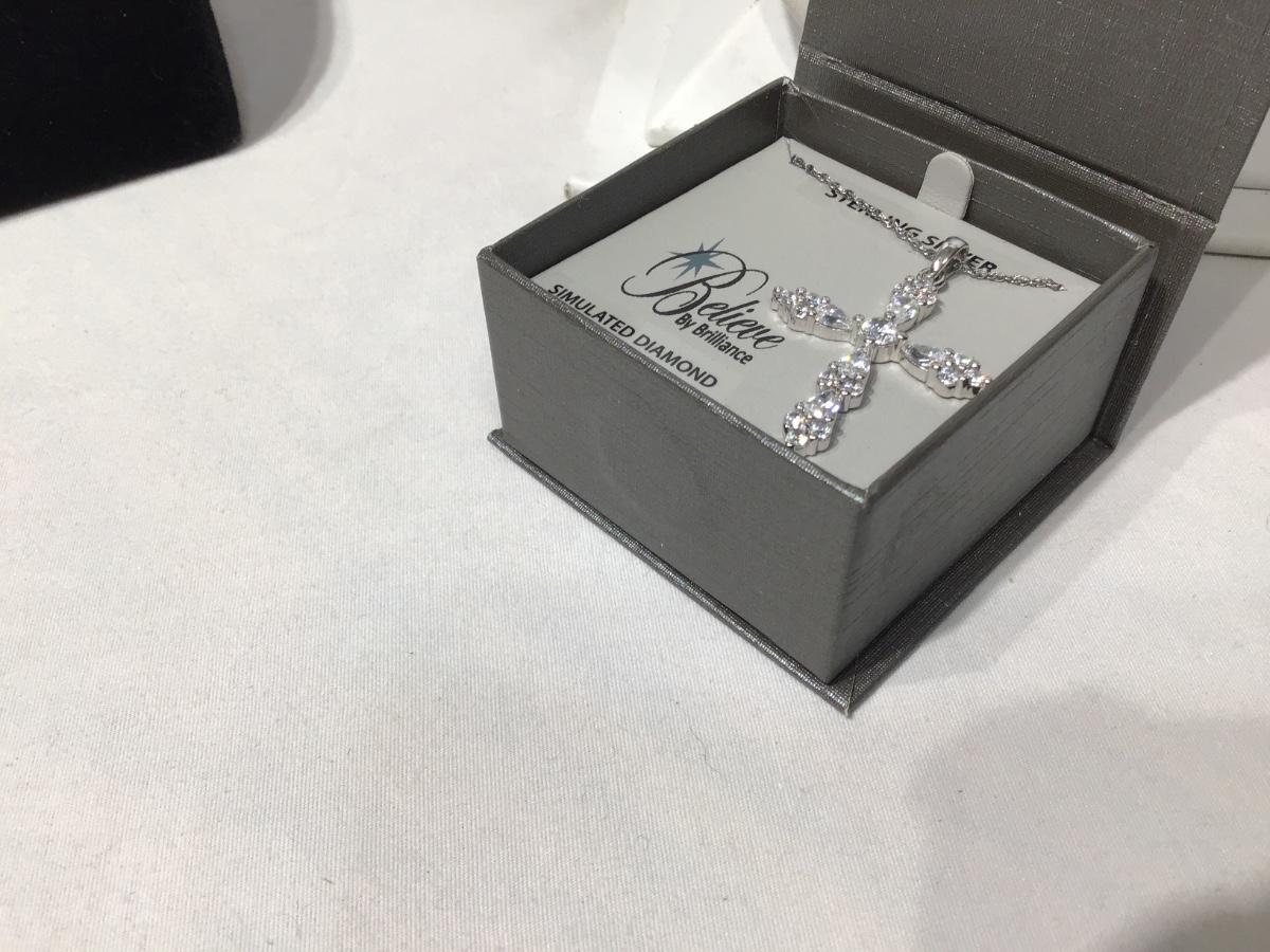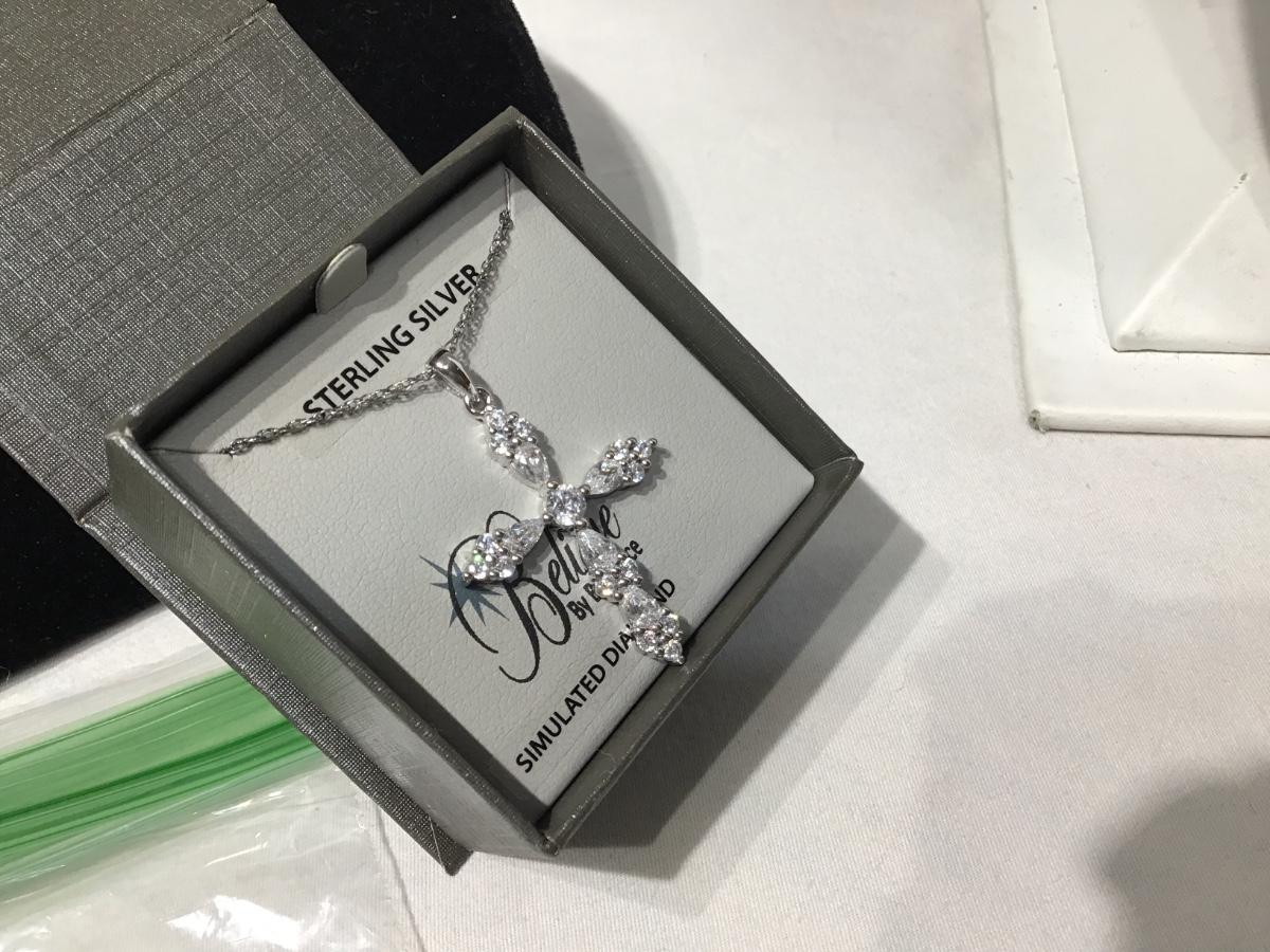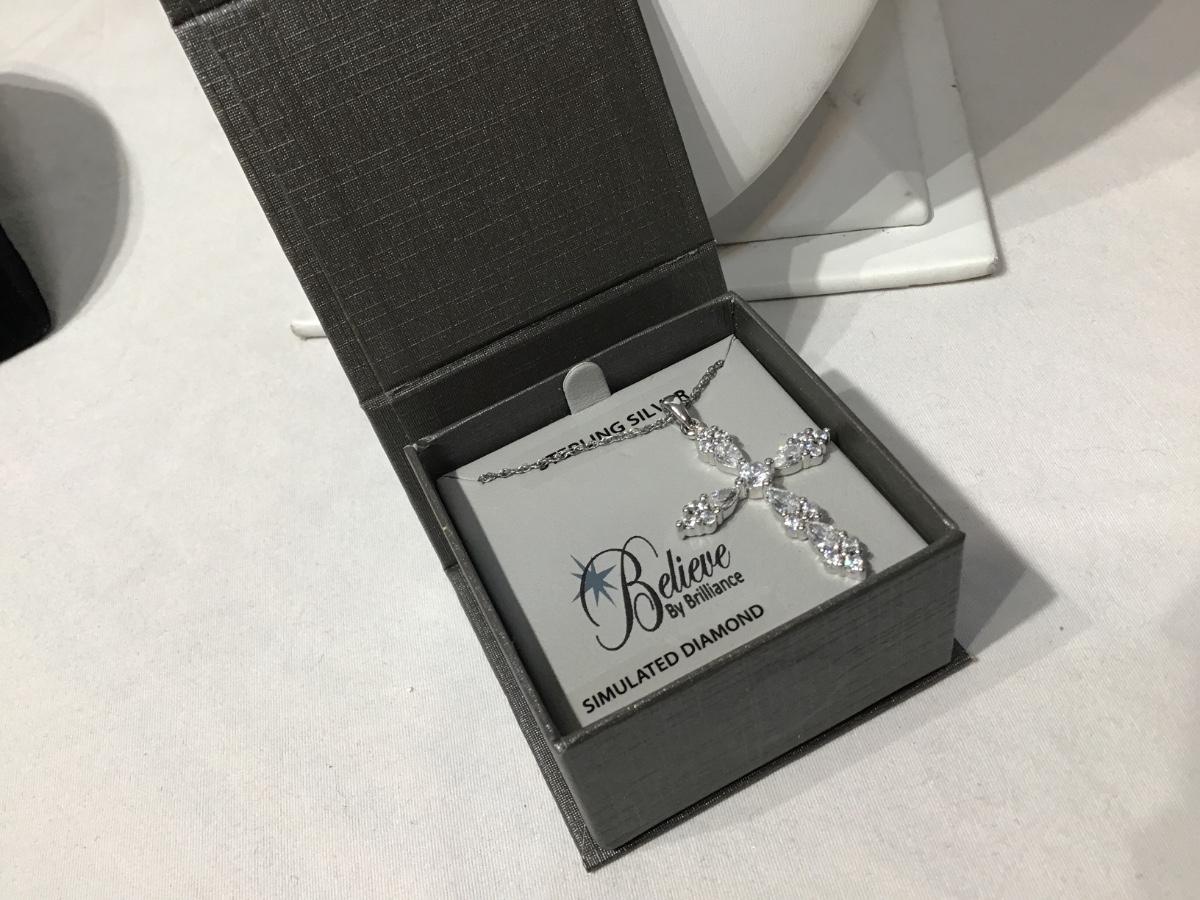 Sterling silver necklace and pendant Simulated Diamonds