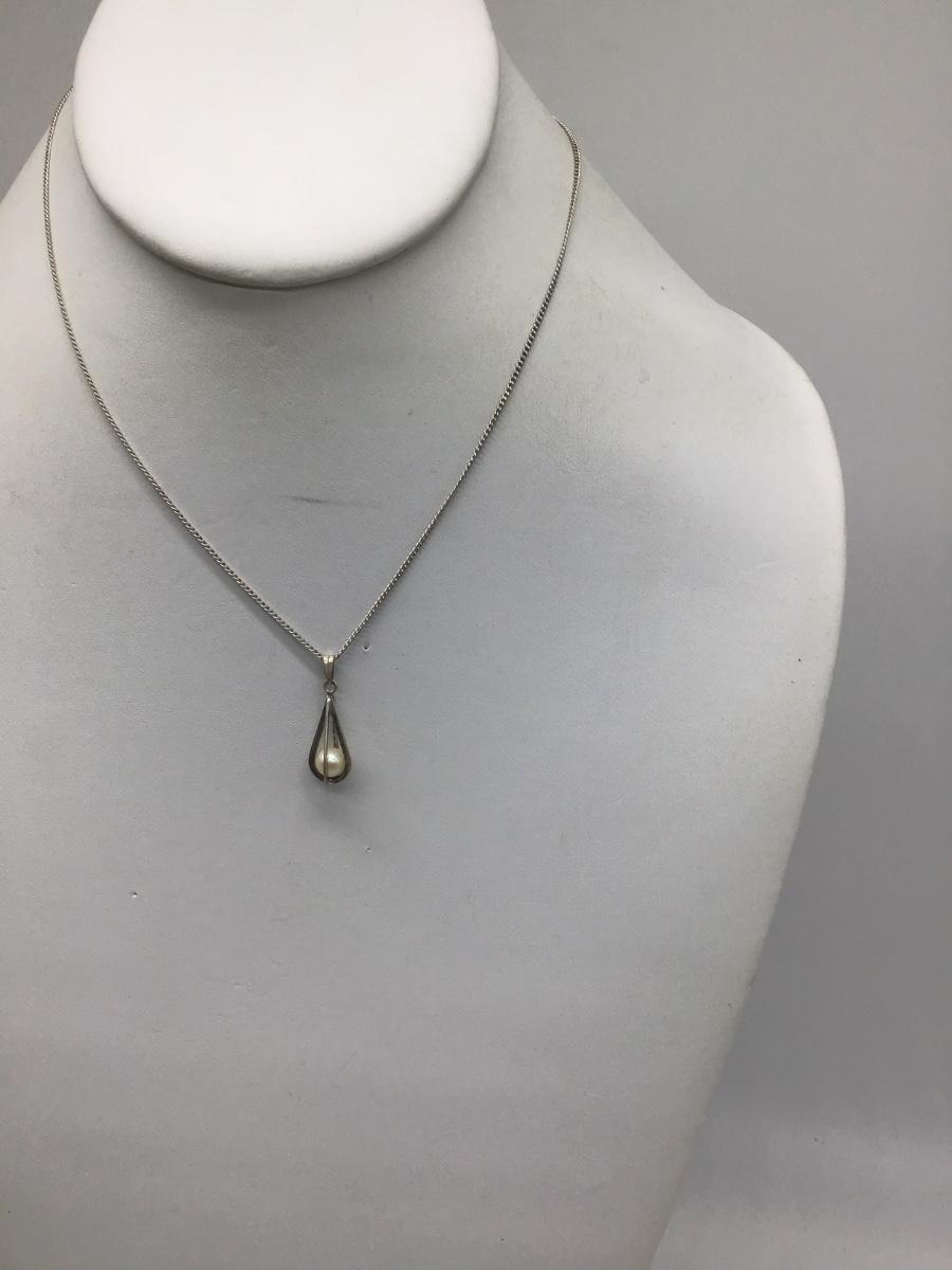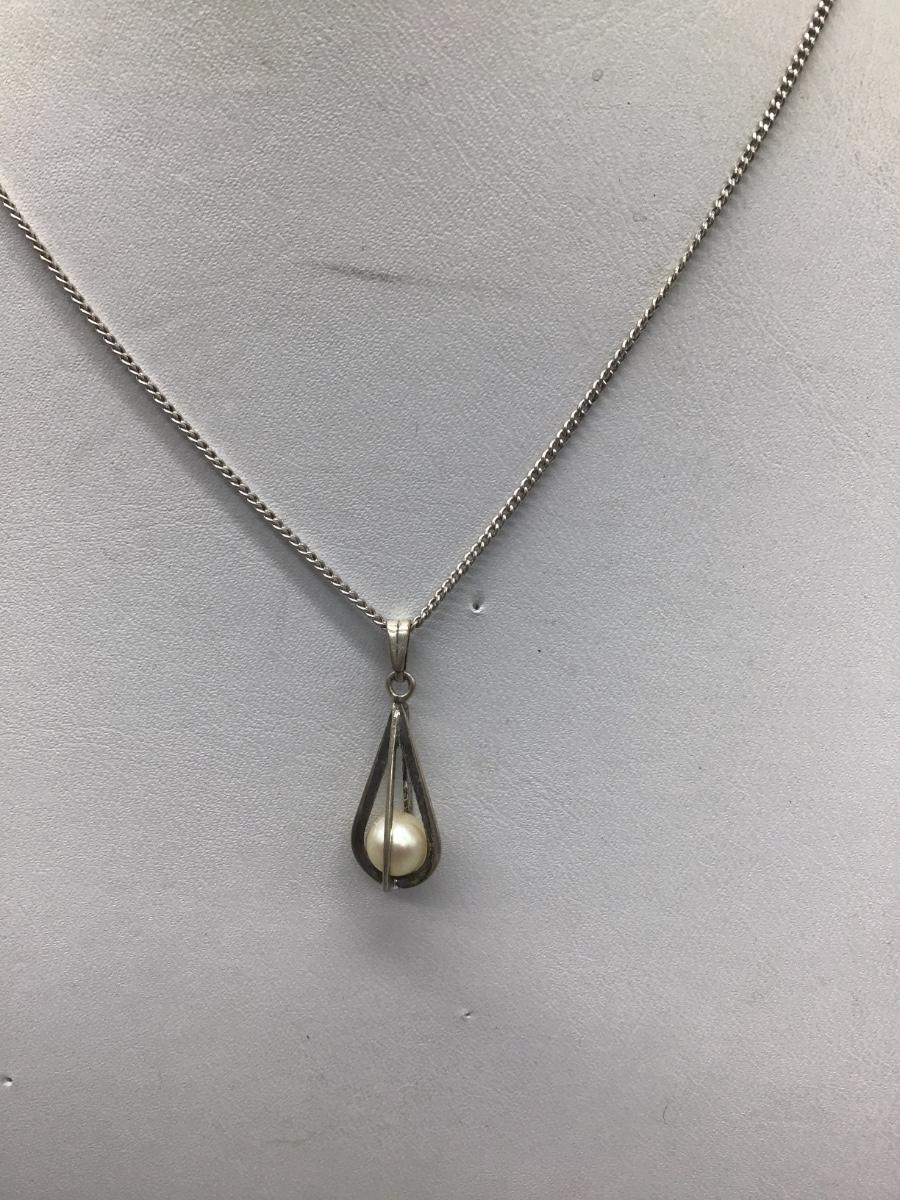 Sterling Silver Necklace And Pendant With Genuine Pearl