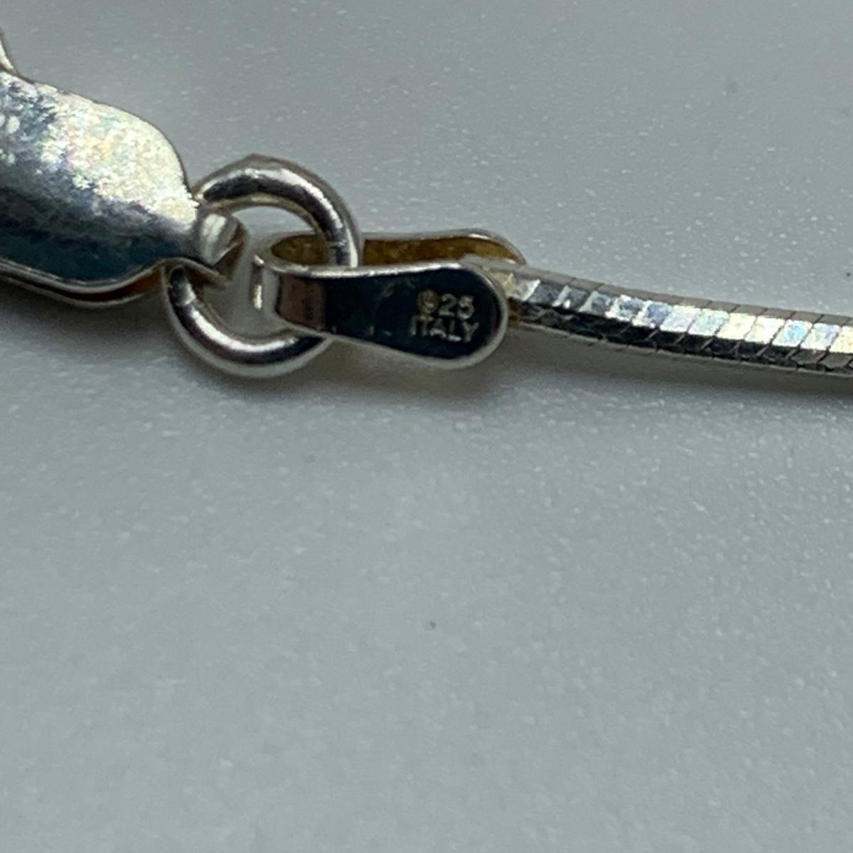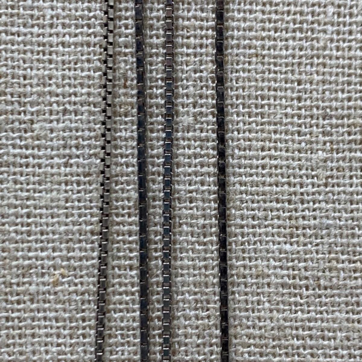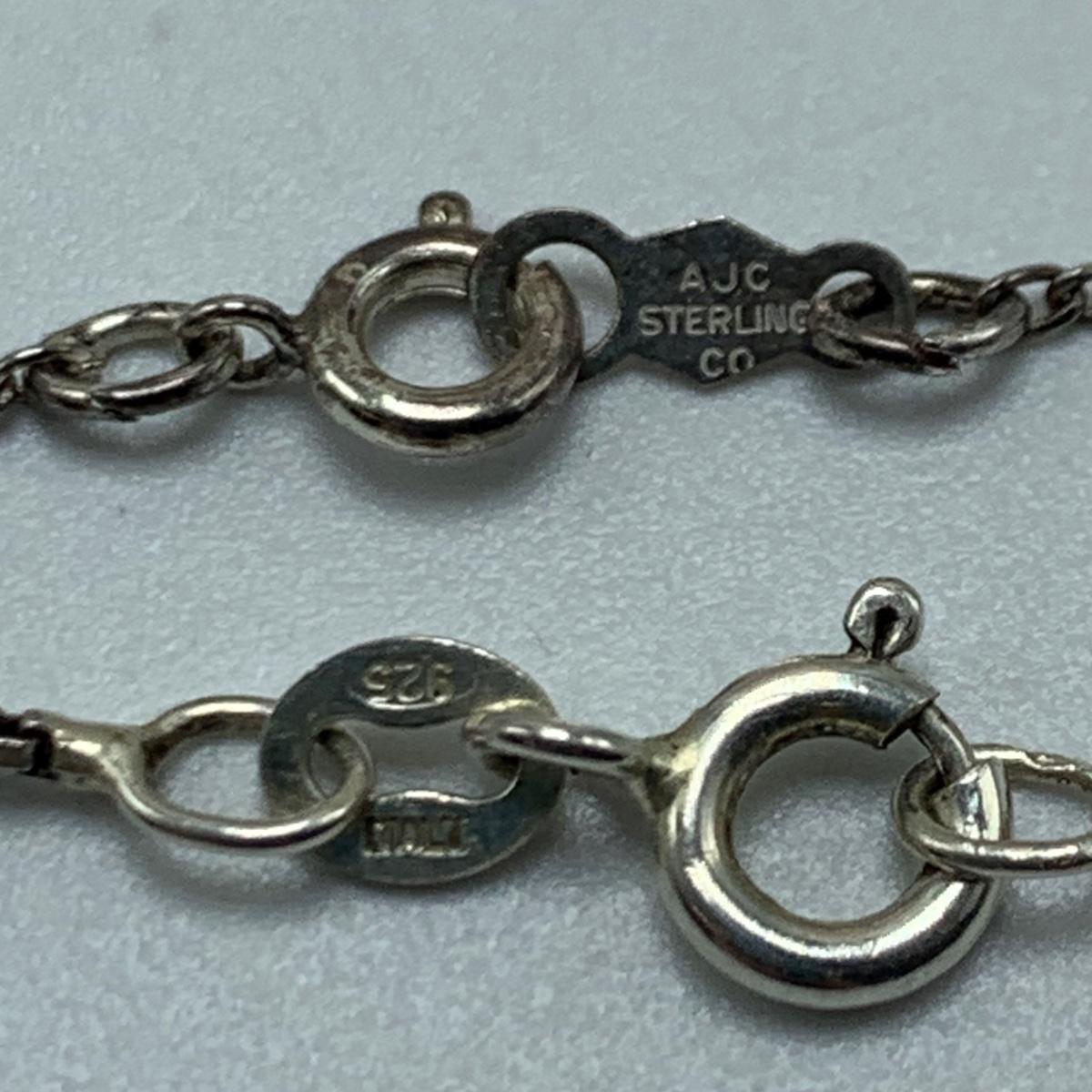 11 necklace chains and one heart shaped pendant. All 11 of the chains are marked 925 or Sterling, the pendant is not. The chains are various styles: chain link, rounded, squared, and more. The longest chain is 21“ long and the shortest is 16“ long. See images for all other markings as well. All sales are final. No returns or refunds. Please bid accordingly.