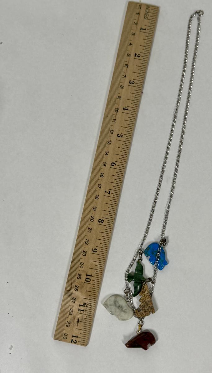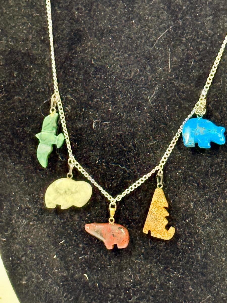 Sterling Silver Necklace with 5 Carved Stone Fetishes