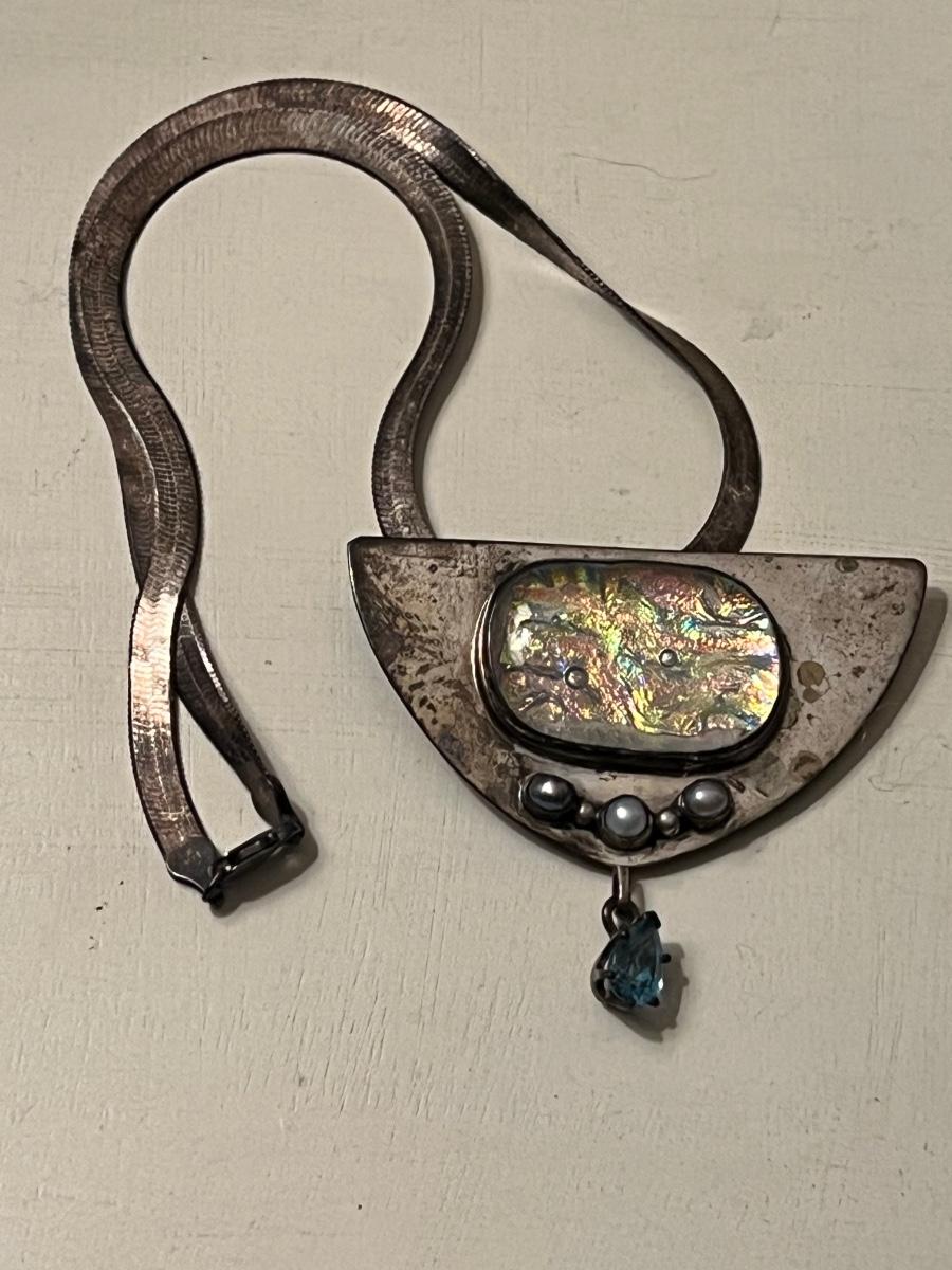 Sterling Silver Necklace with Sterling Pendant-Signed Keskinis