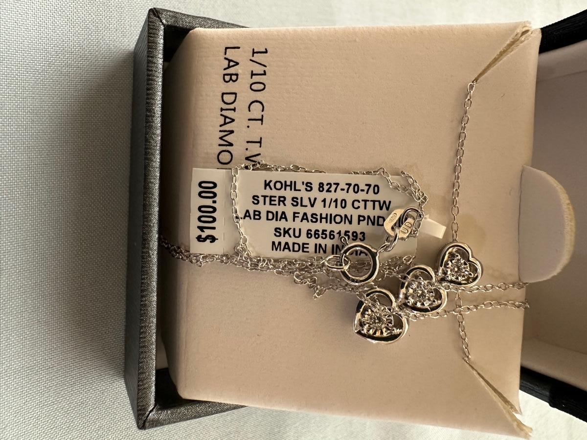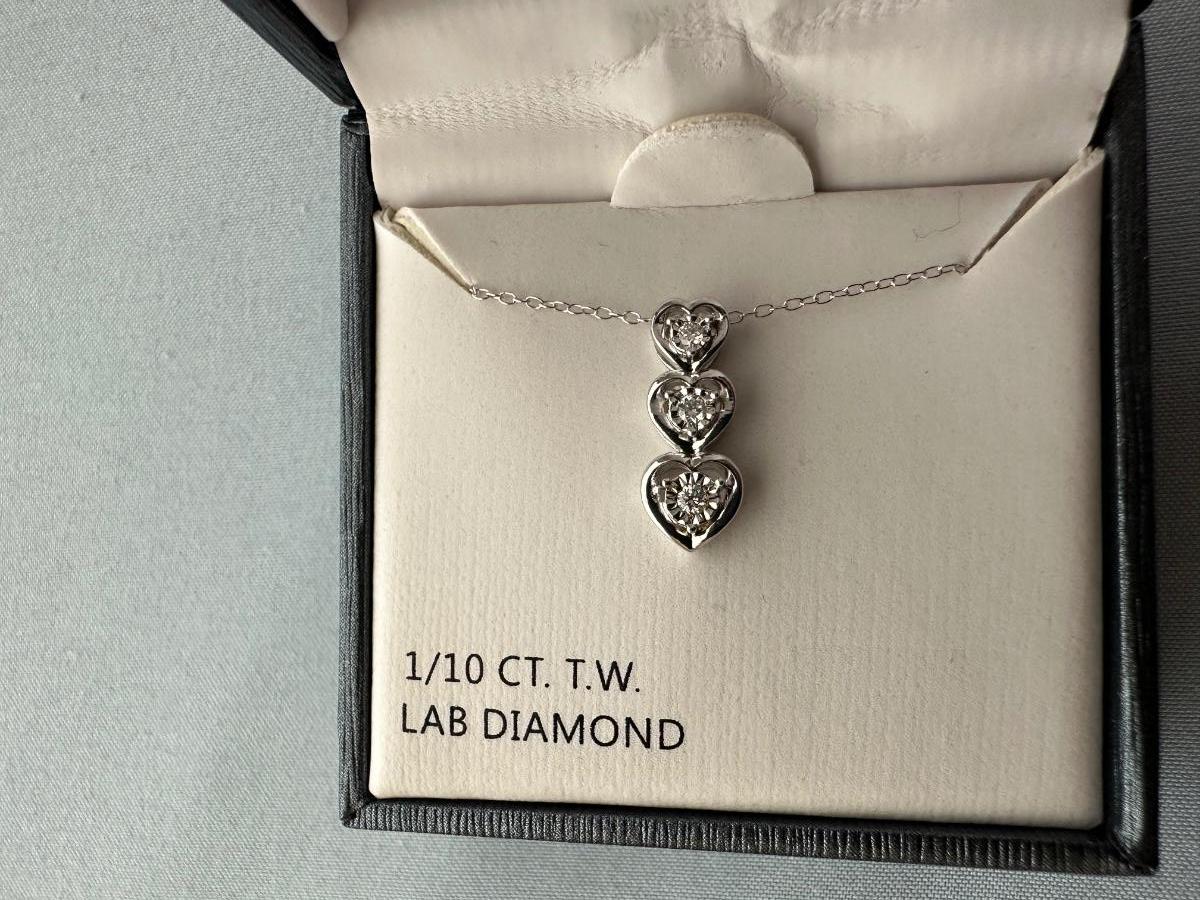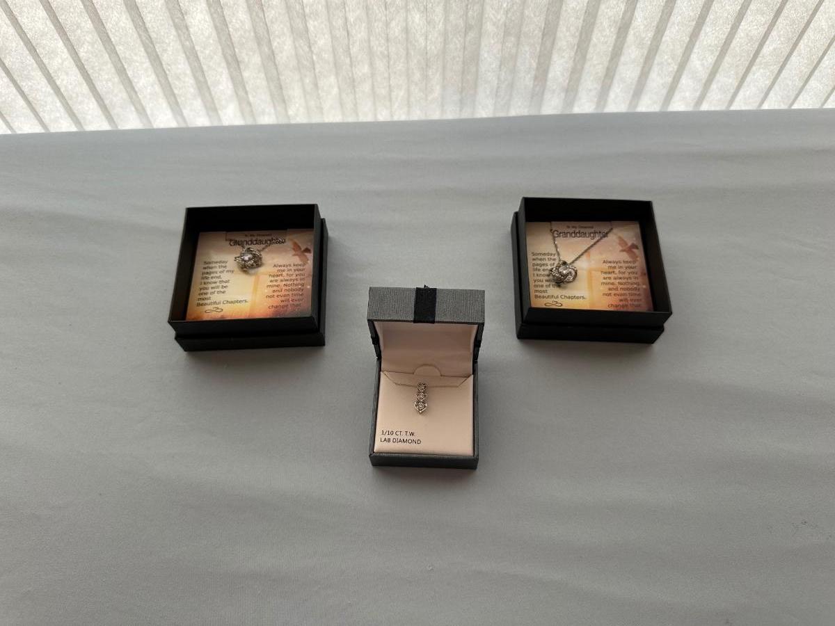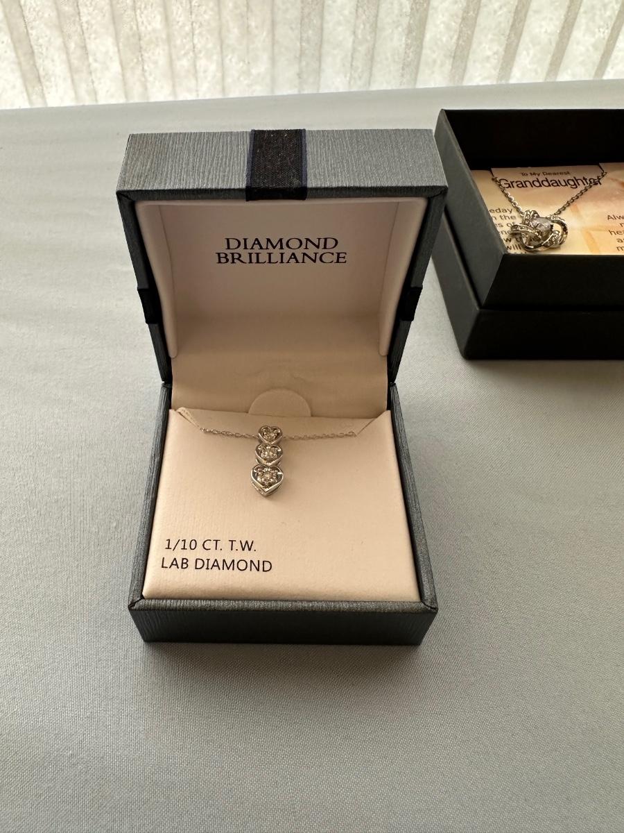 STERLING SILVER NECKLACE W/LAB DIAMONDS PLUS 2 OTHER NECKLACES