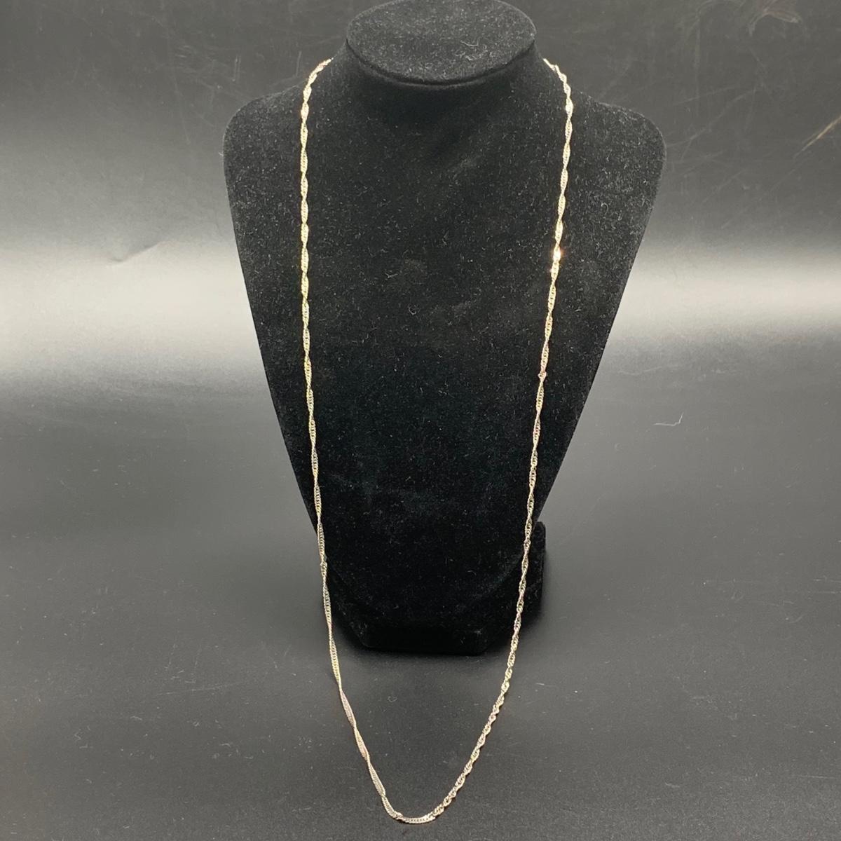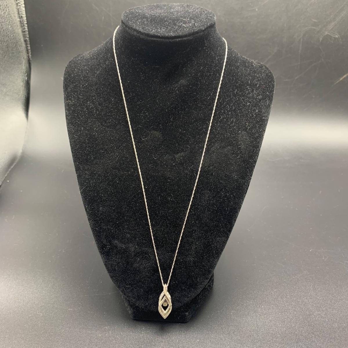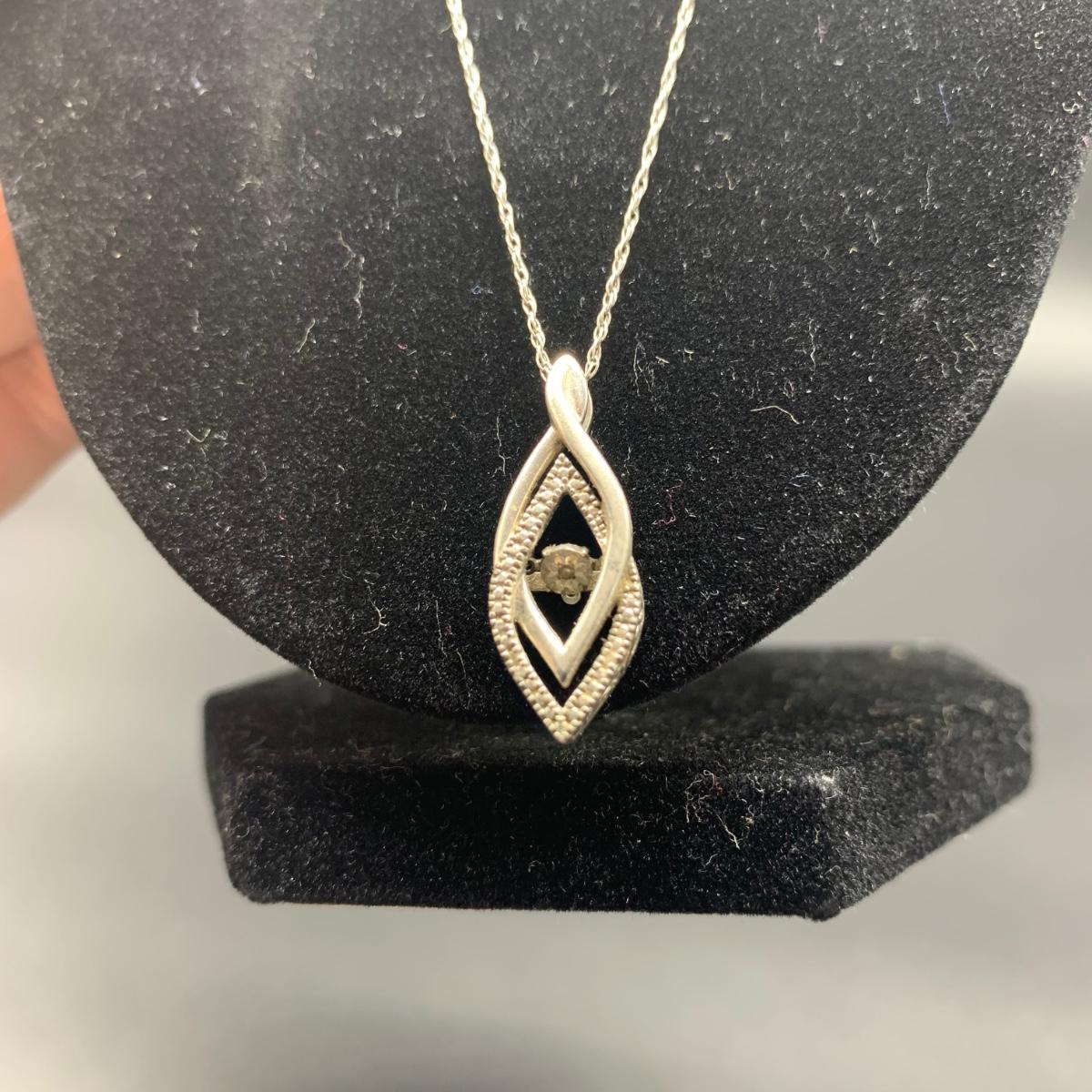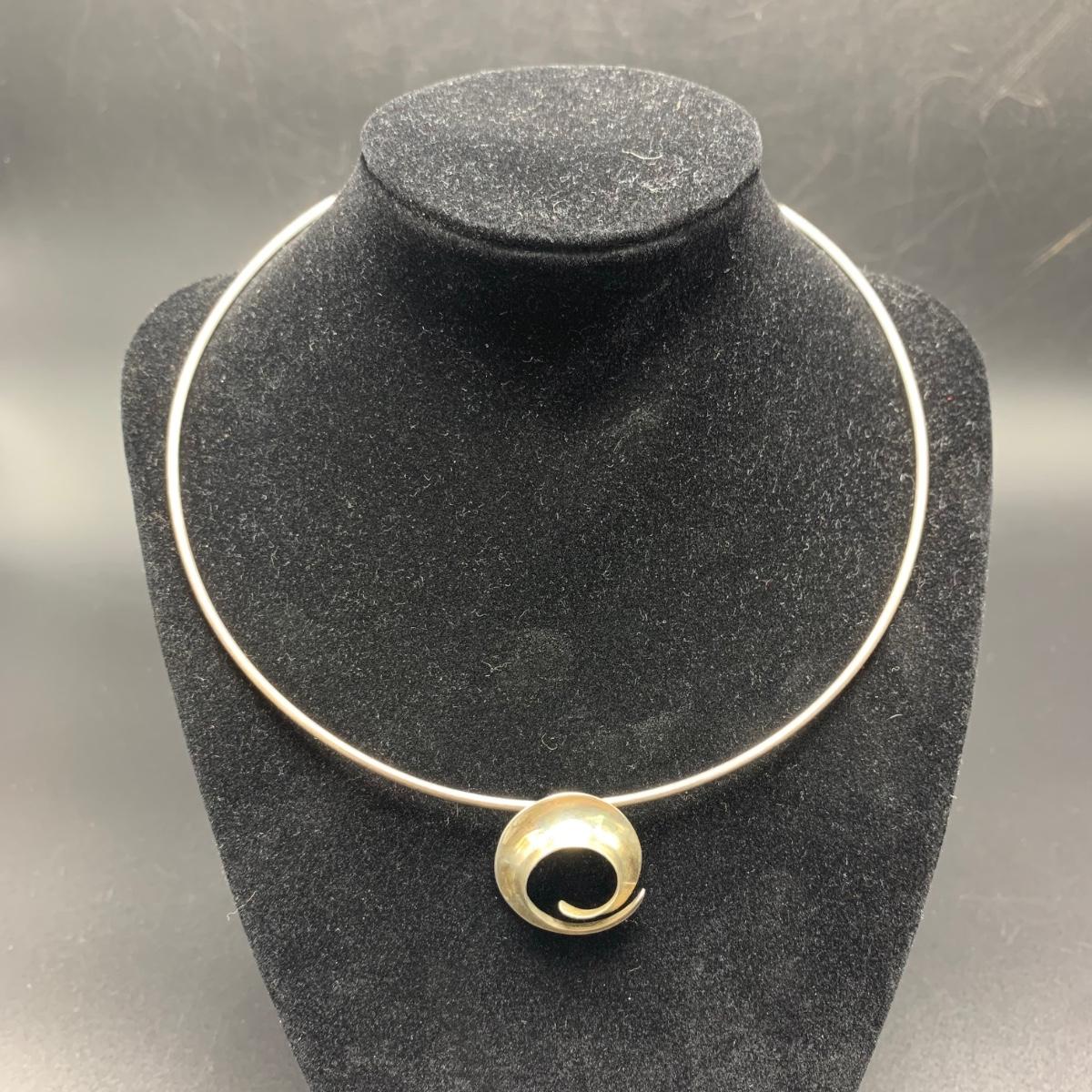 Five Sterling silver necklace chains, two bracelets, one sterling metal choker collar, and four necklace pendants. One bracelet needs the clasp replaced. The pendant on the choker is marked “M. Good 925”. The longest chain is a 30” chain. The shortest is 18”. Shipping available.
