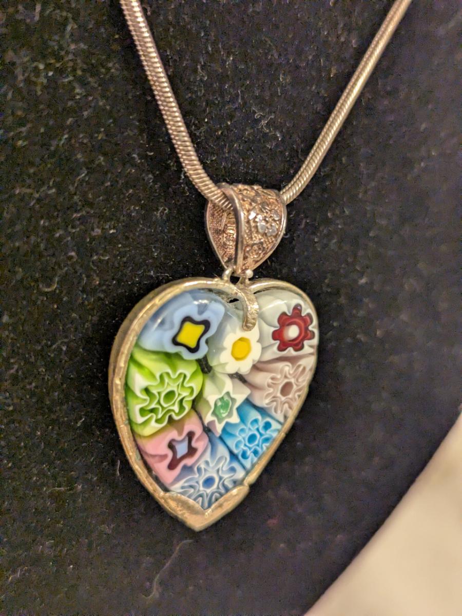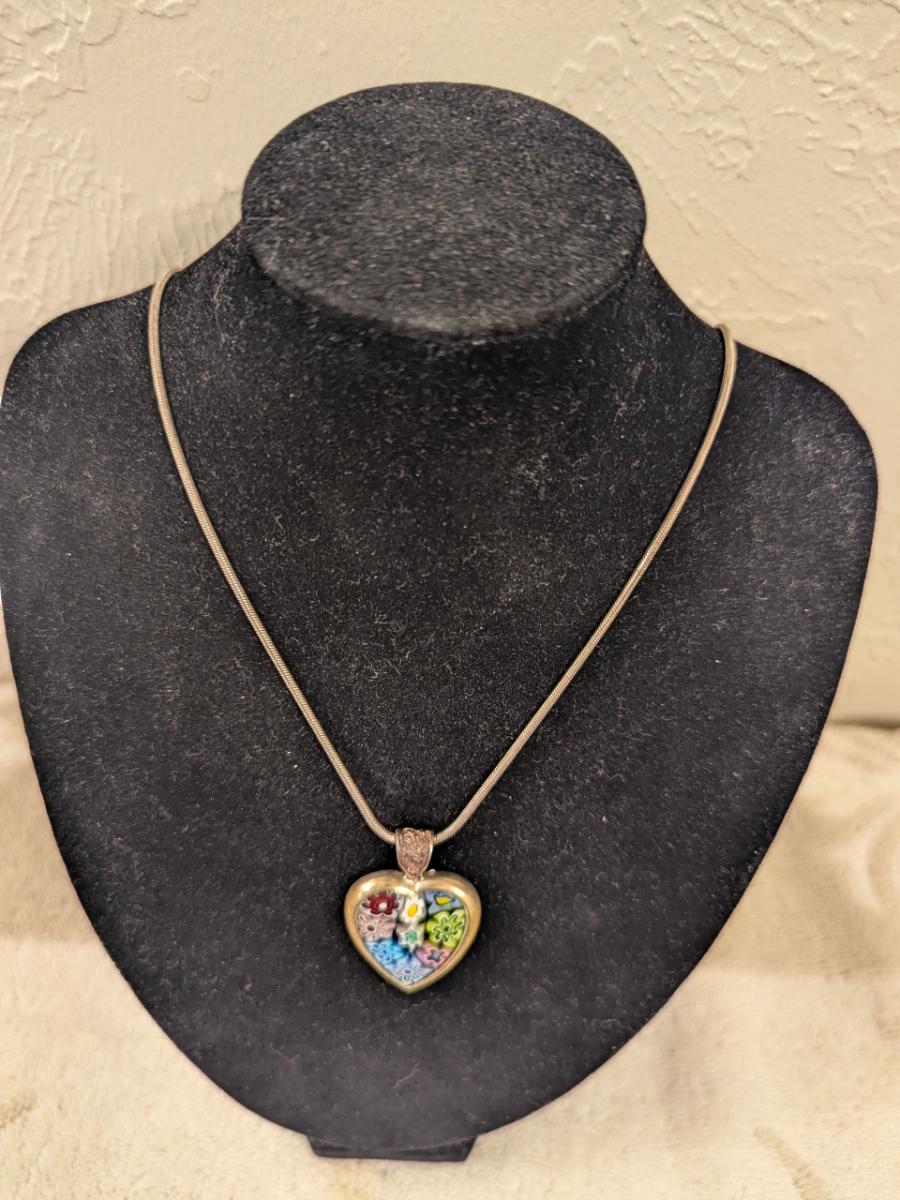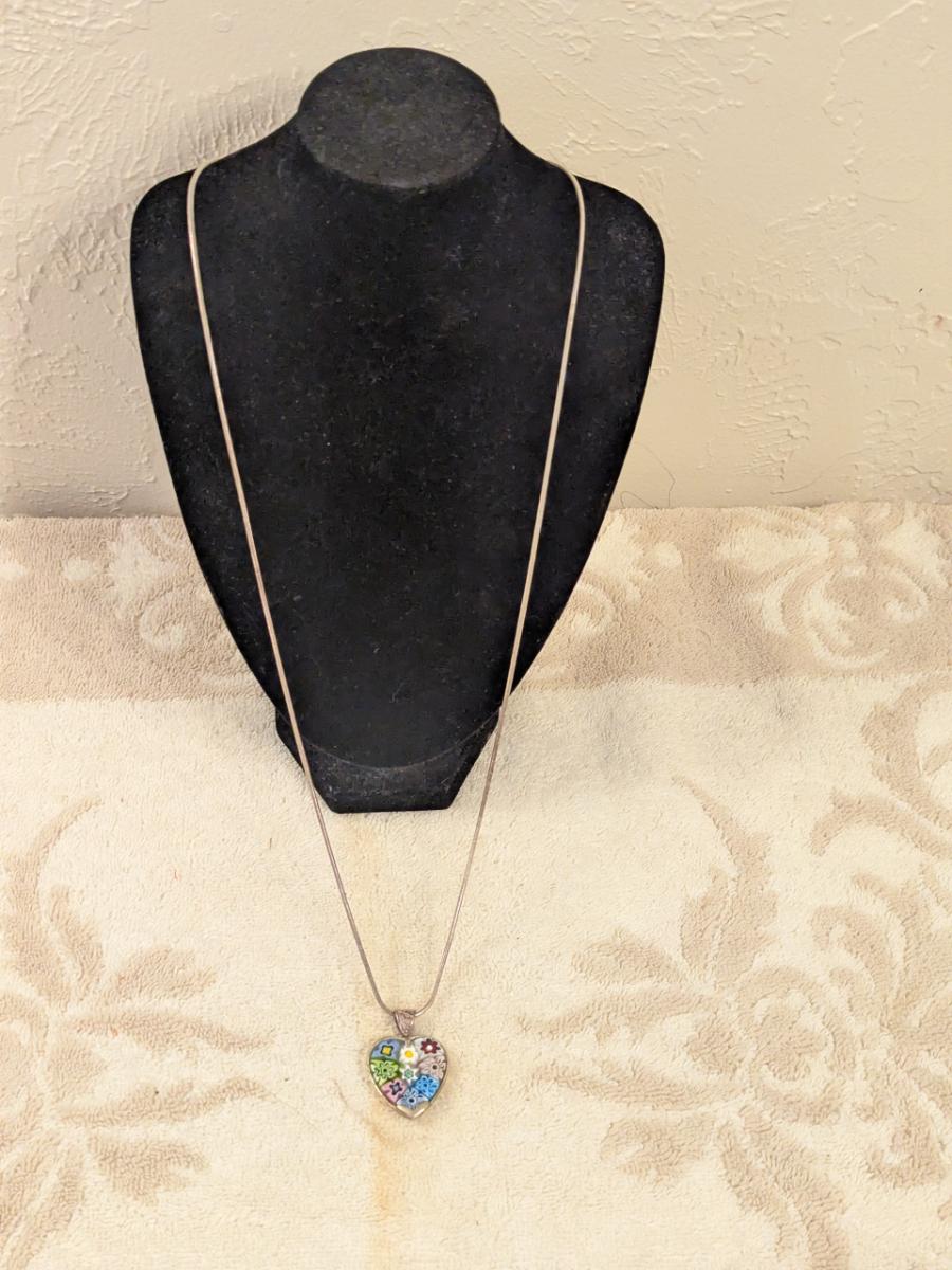 Sterling silver neclacke with heart shaped pendant- made in Italy but has no marking of Murano despite looking like a murano style heart