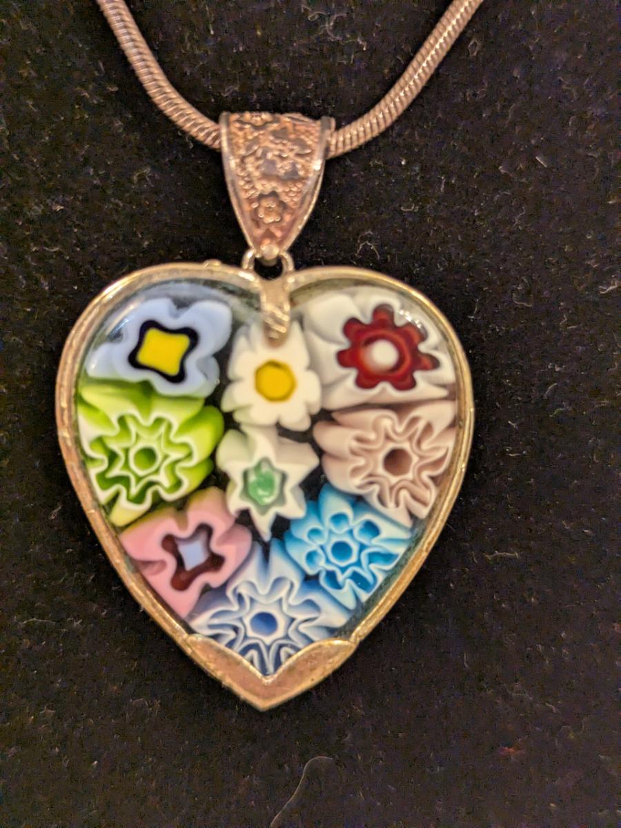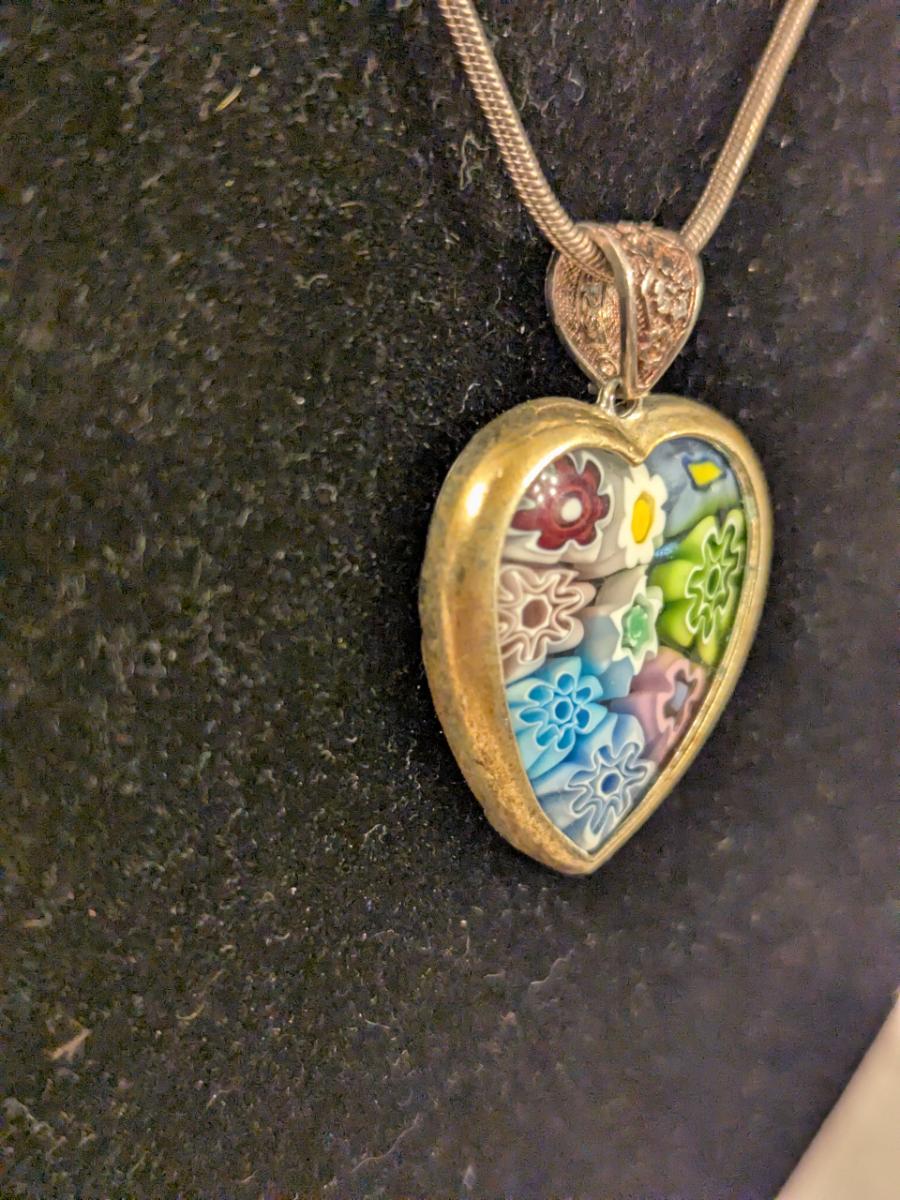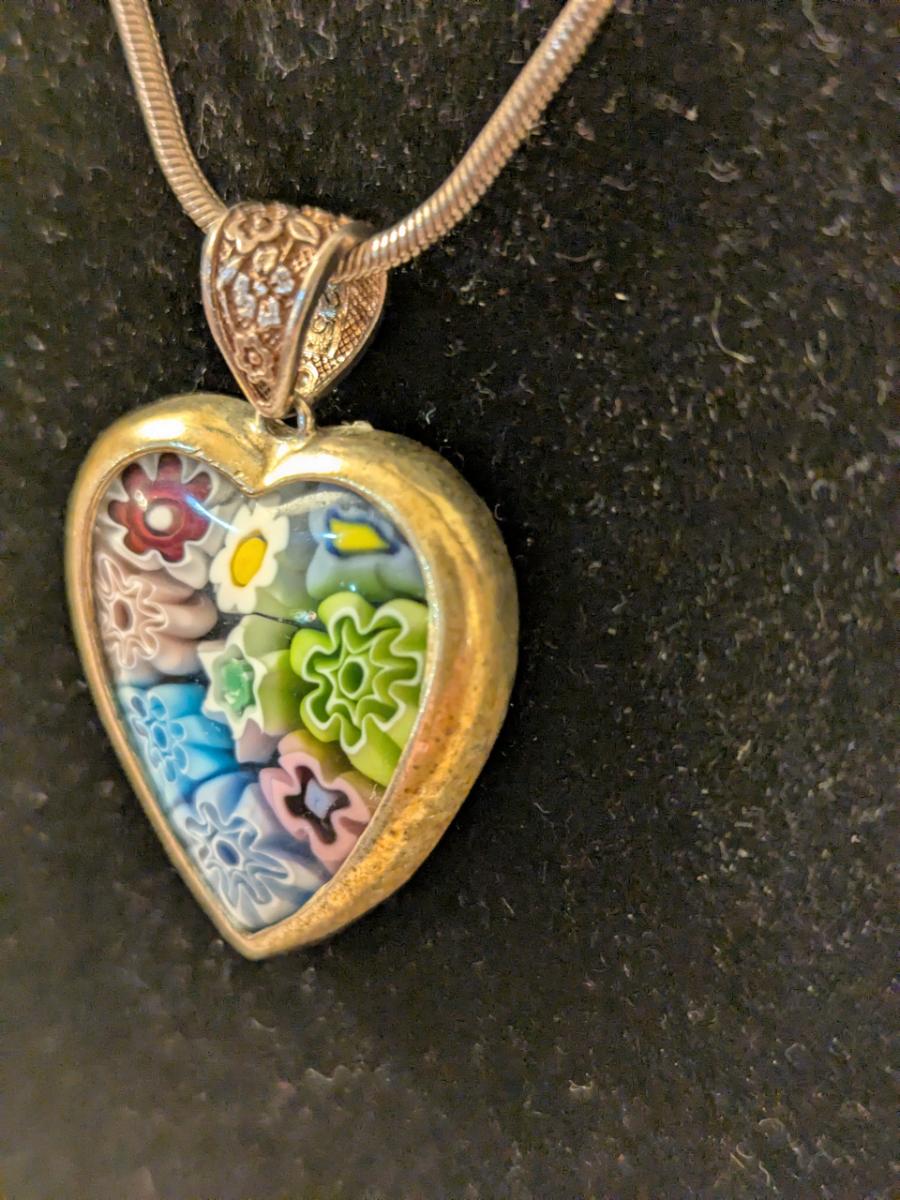 Sterling silver neclacke with heart shaped pendant- made in Italy but has no marking of Murano despite looking like a murano style heart