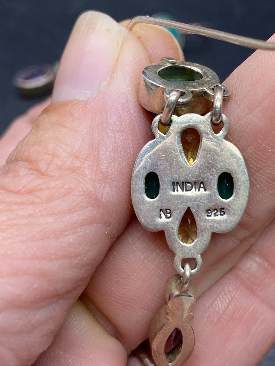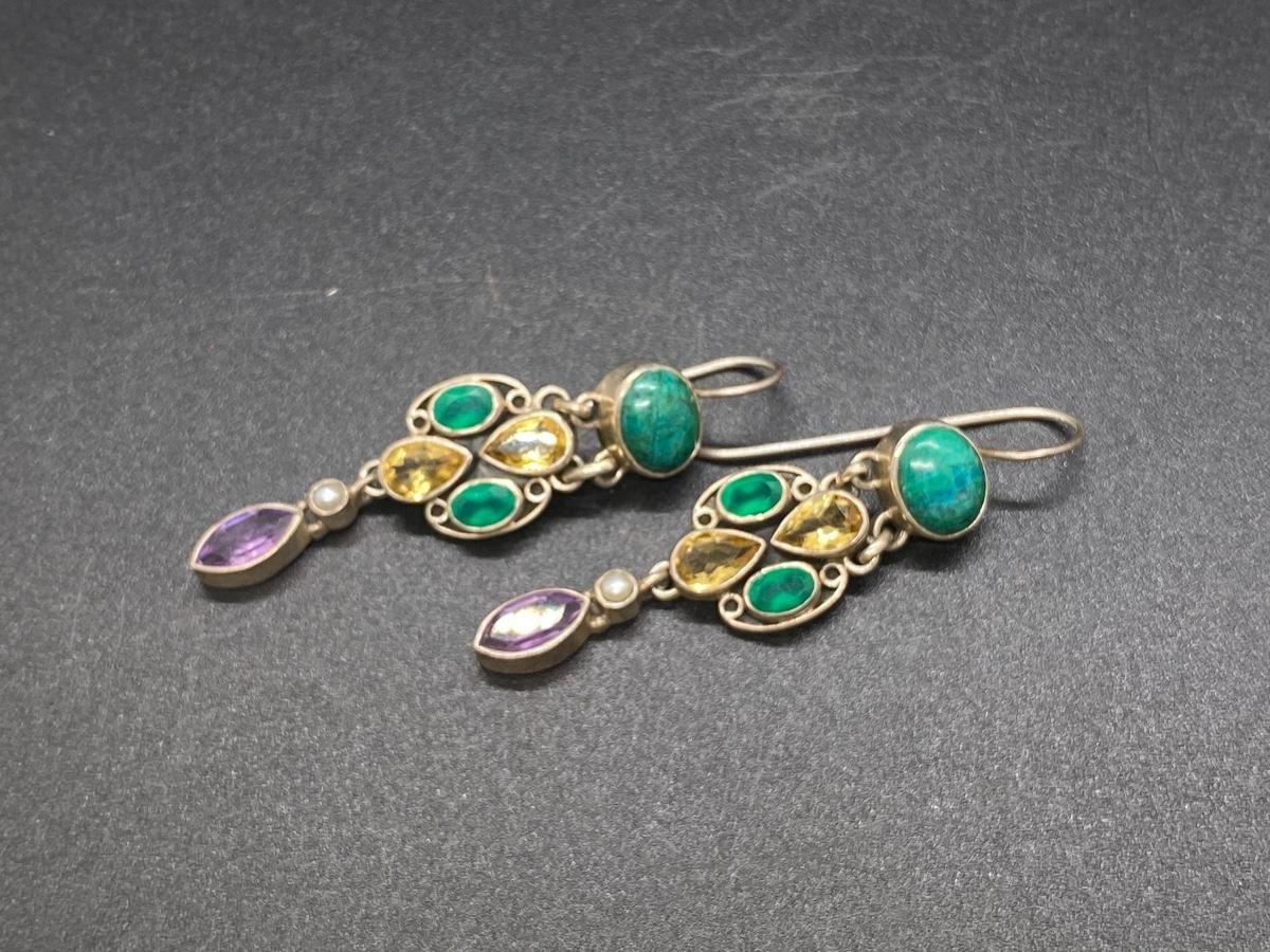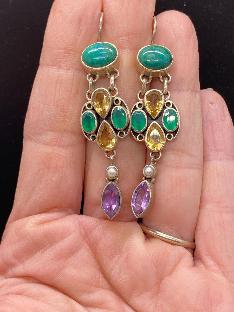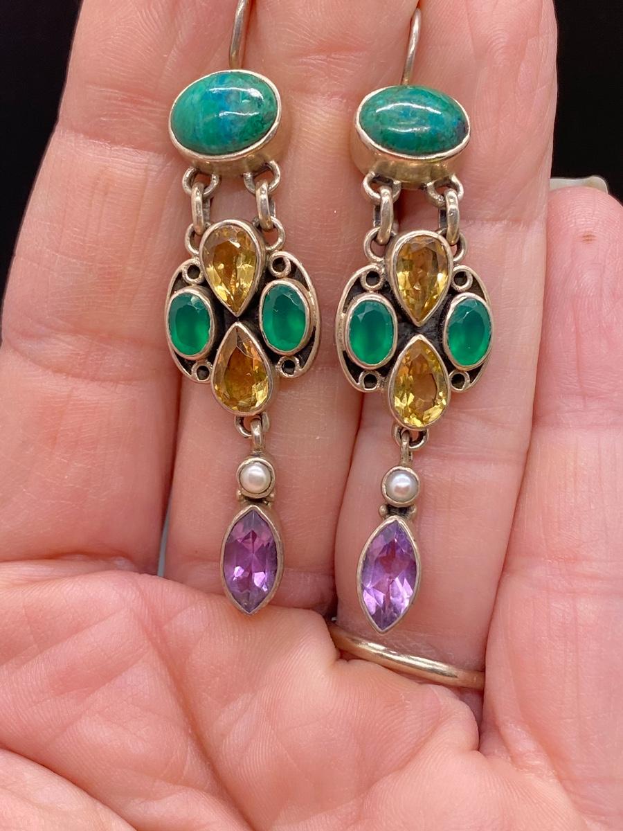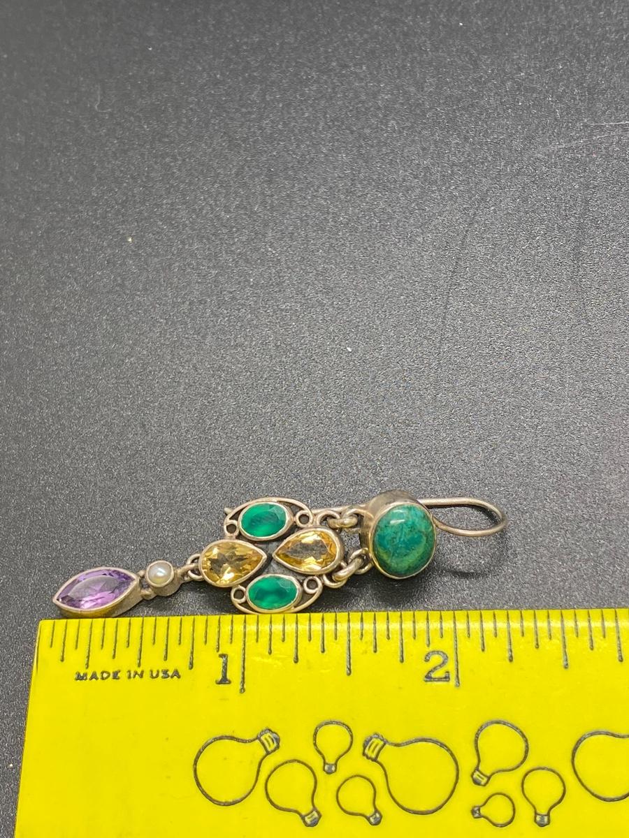 Sterling Silver Nicky Butler dangle earrings. Beautiful drop earrings set in 925 silver with what looks like malachite, amethyst, and citrine. Stamped on the back. About 2.25" length.