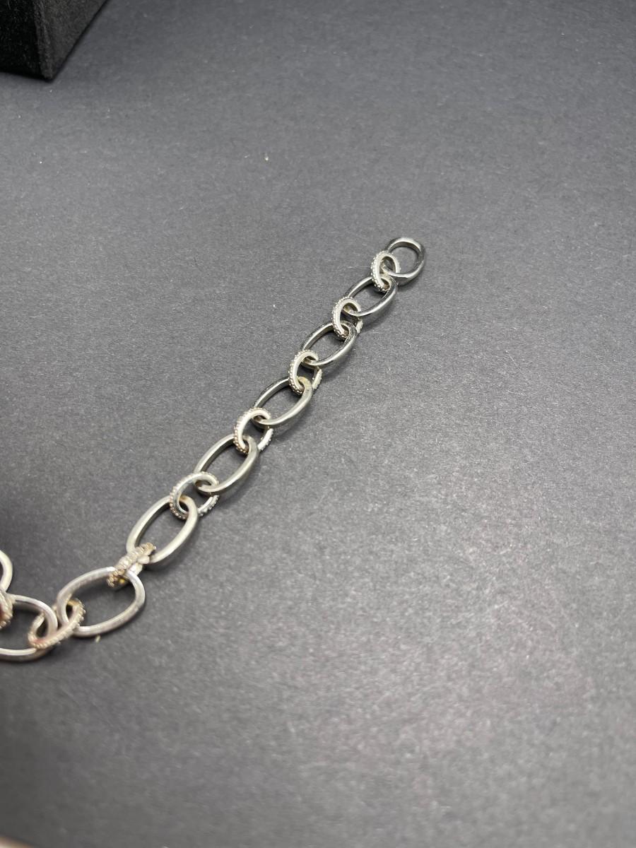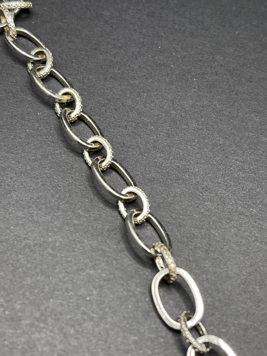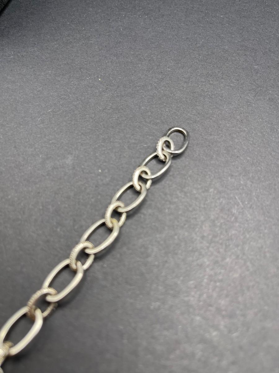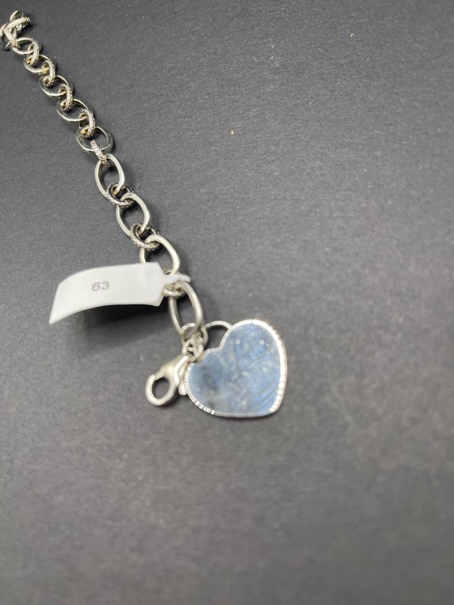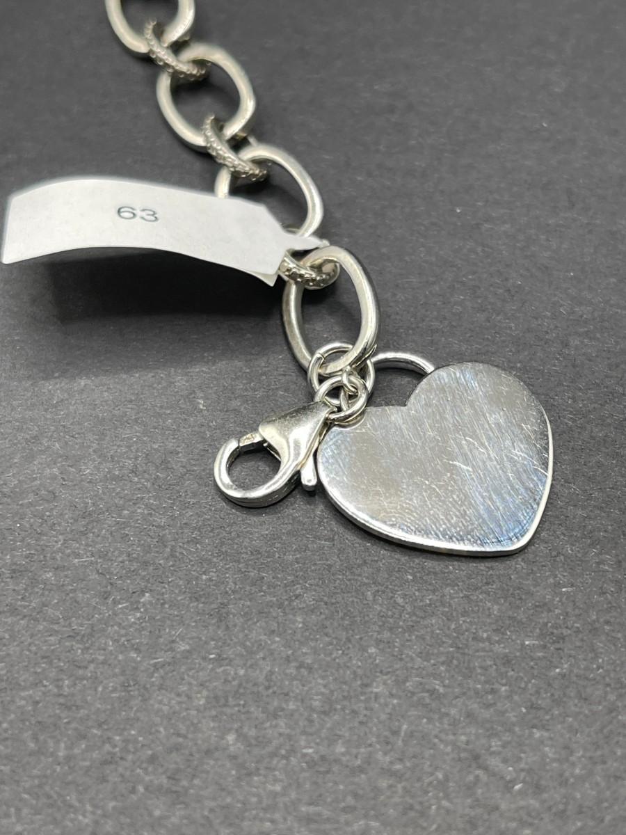 Sterling silver oval link bracelet with tiny diamonds and heart shaped charm. 7 1/2". .46 ozt.