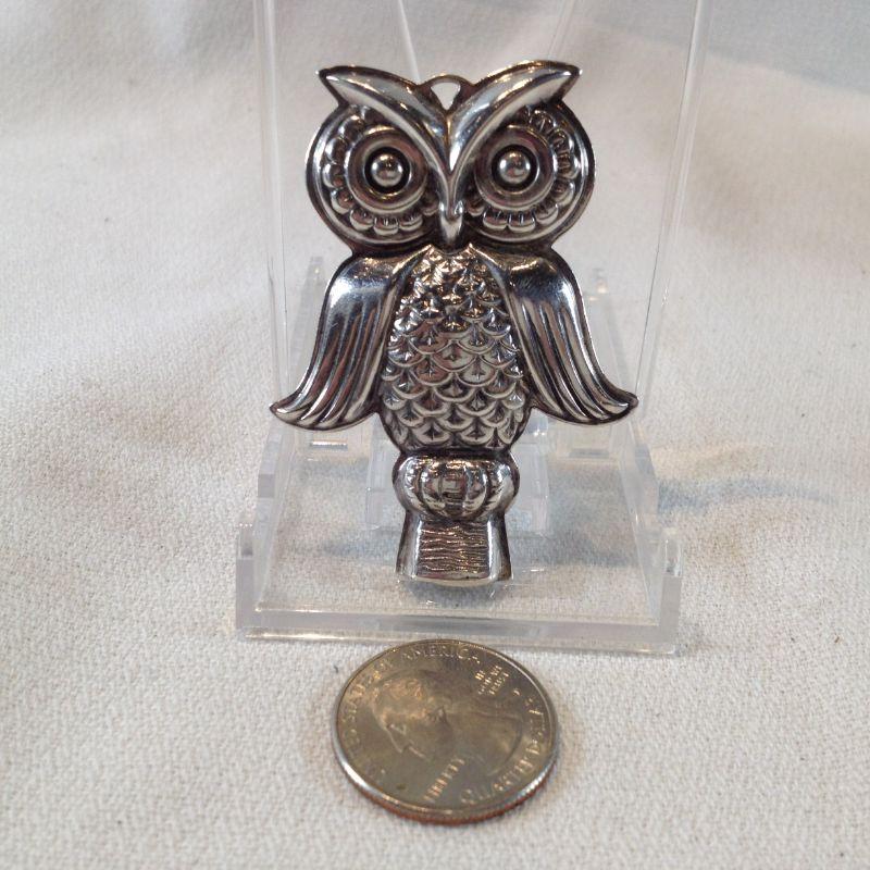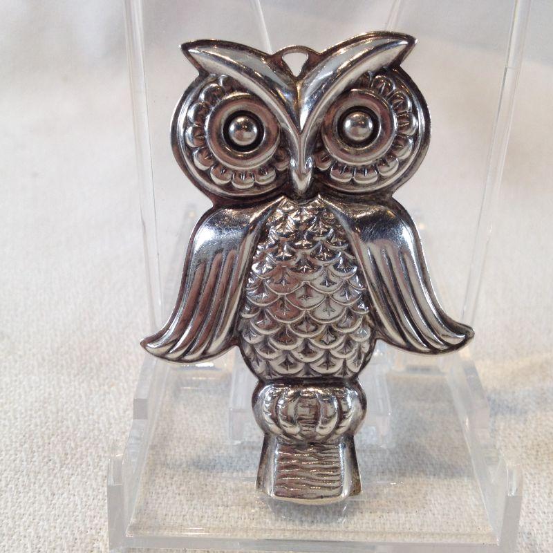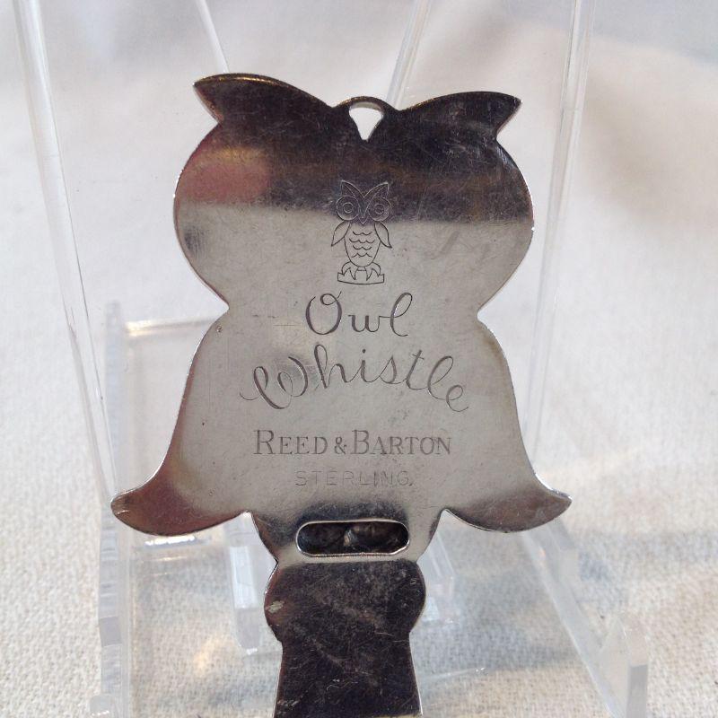 This little guy is a Reed & Barton Owl Whistle made of sterling silver. Has a loop at the top to wear as a pendant. It does blow nicely and is in very good condition, Really cute and useful, too. The starting bid is $20.00.