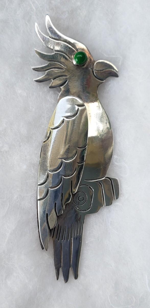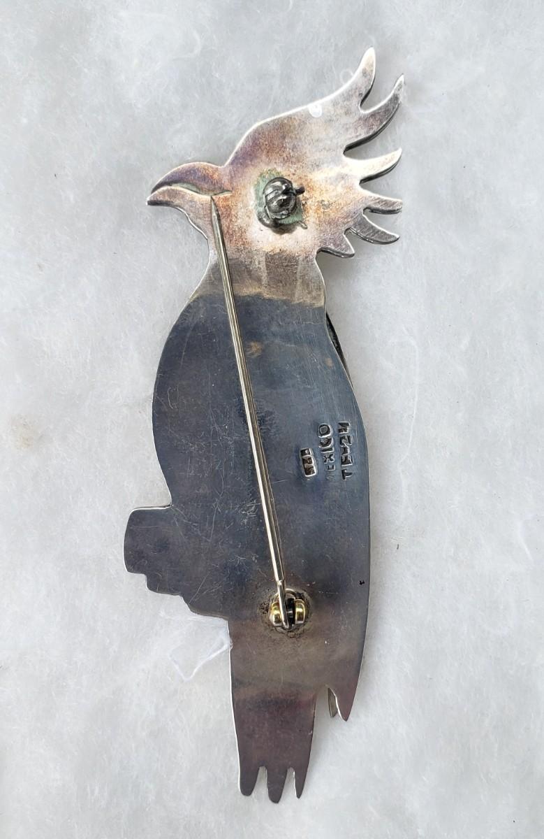 Vintage Sterling silver cockatoo made in Mexico. Marked 925