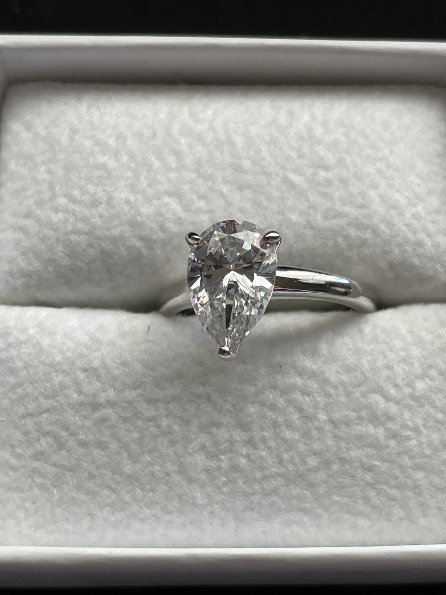 STERLING SILVER PEAR SHAPE SOLITAIRE RING