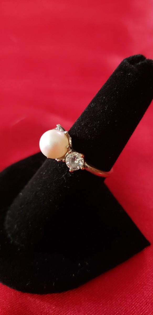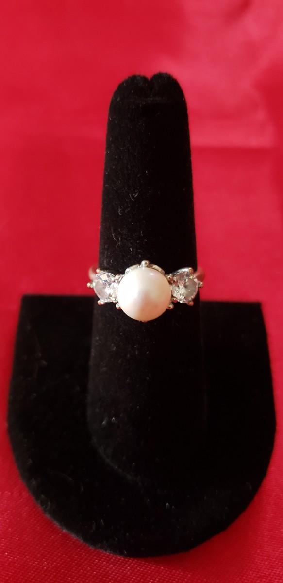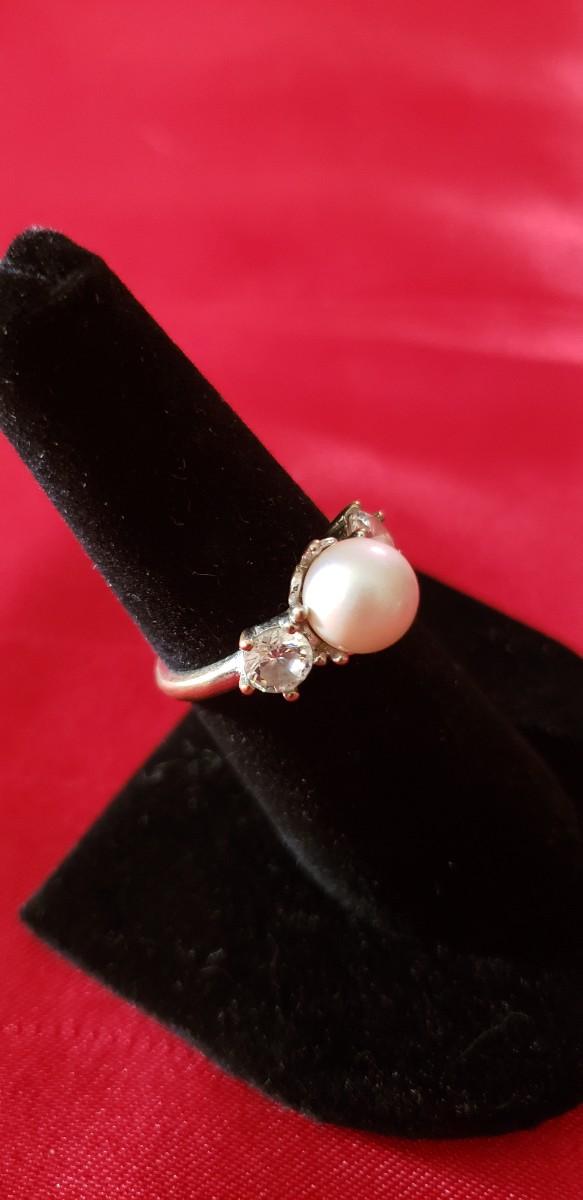 Sterling silver pearl and diamond ring size 7 natural pearl and diamond