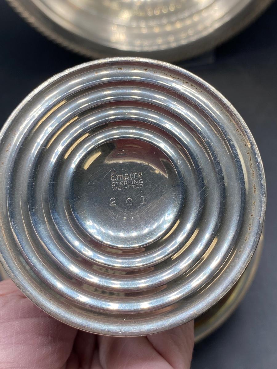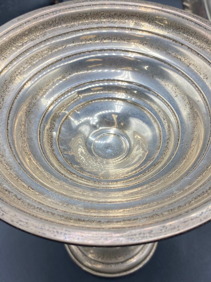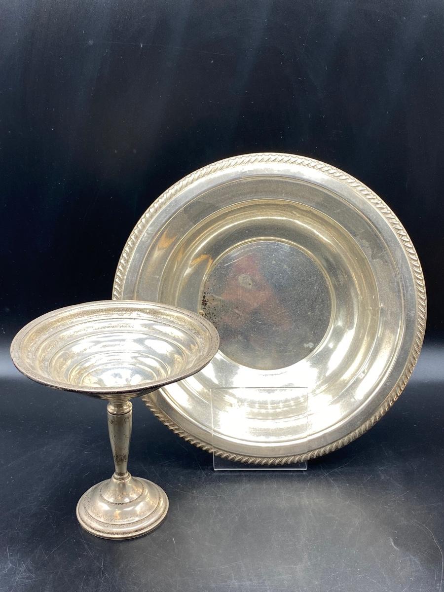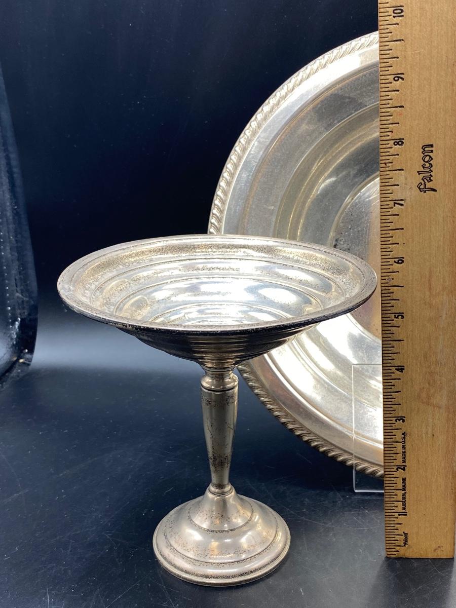 Sterling silver compote and bowl. A couple small dings but in otherwise good condition. Compote is weighted.