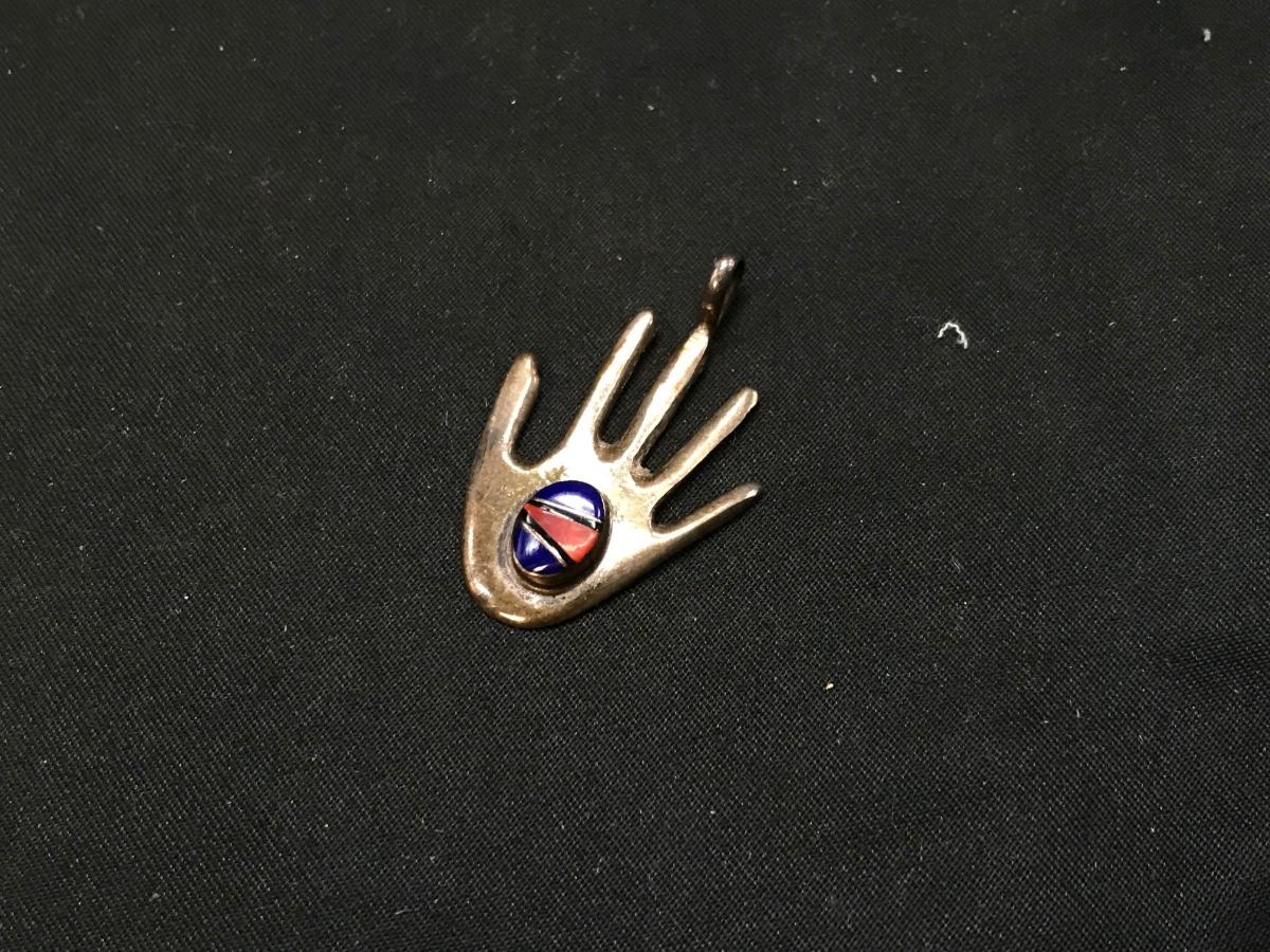 With Zuni style insert in palm of hand very nicely made