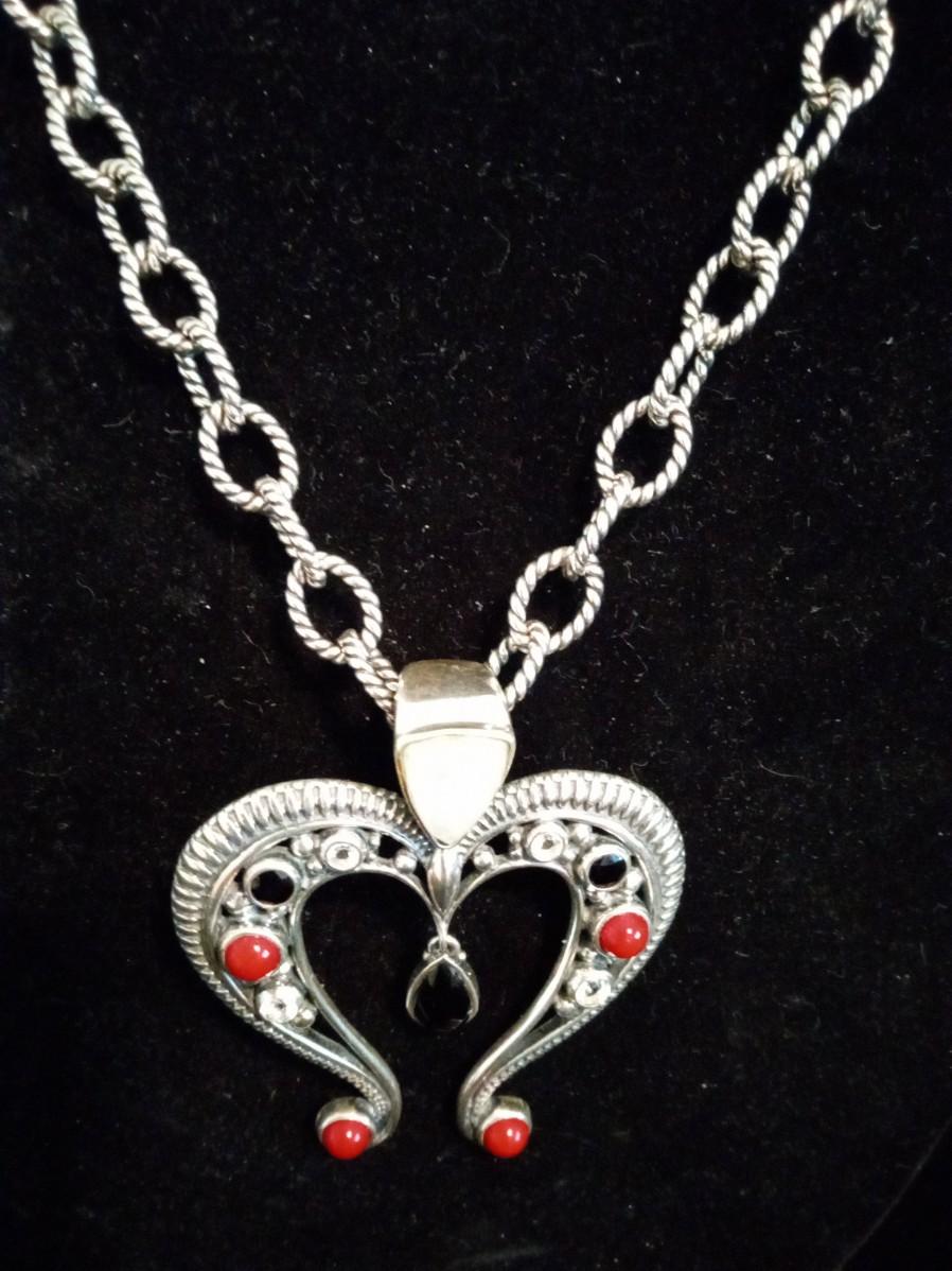 THE PENDANT MEASURES APPROX 2" THE CHAIN IS 14" / 28" OPEN. THE TOTAL WEIGHT IS 75.68 grams