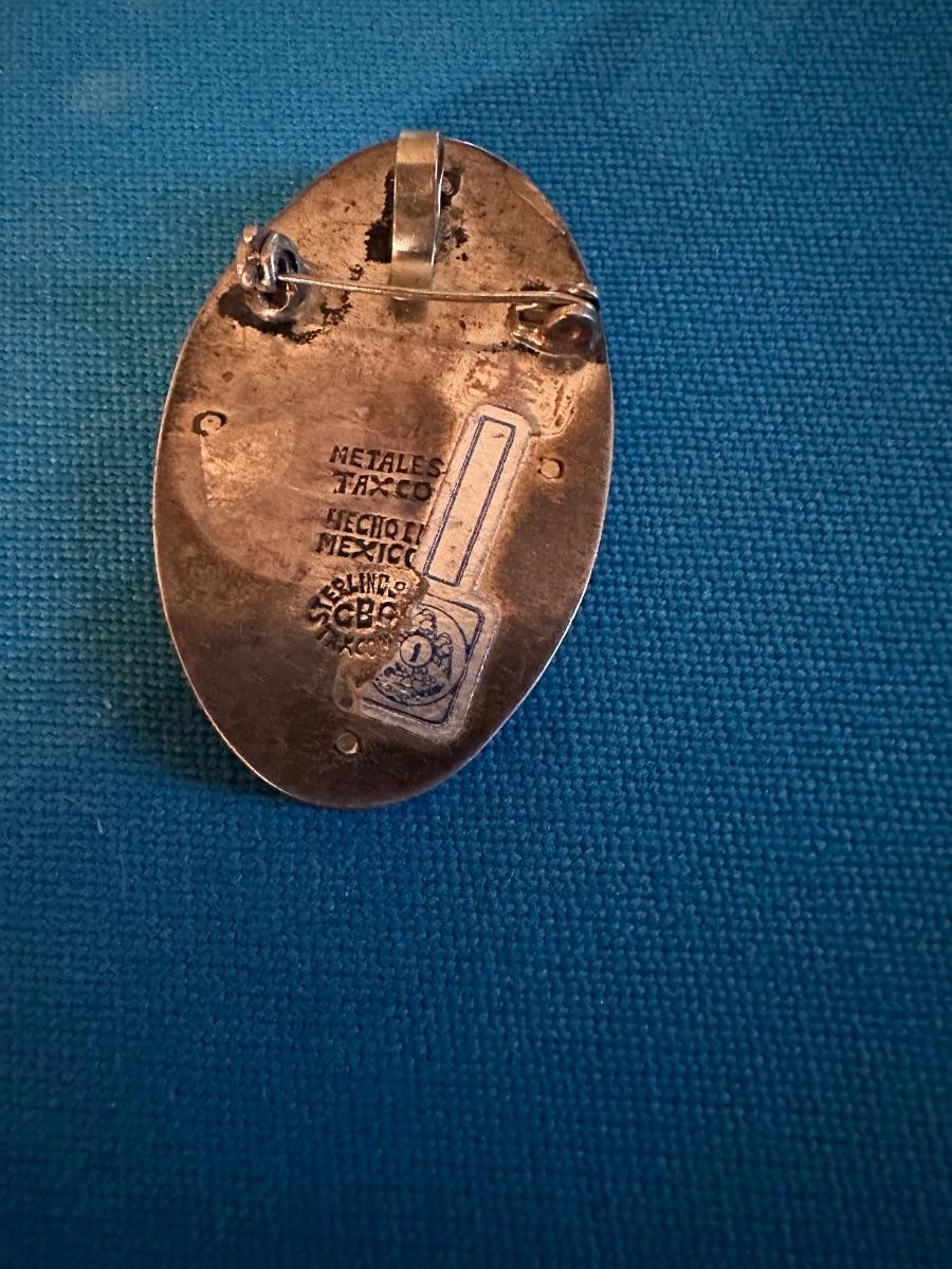Taxco Mexico sterling silver pendant brooch combo with turquoise accents