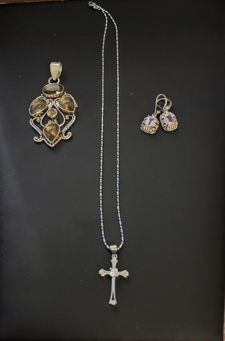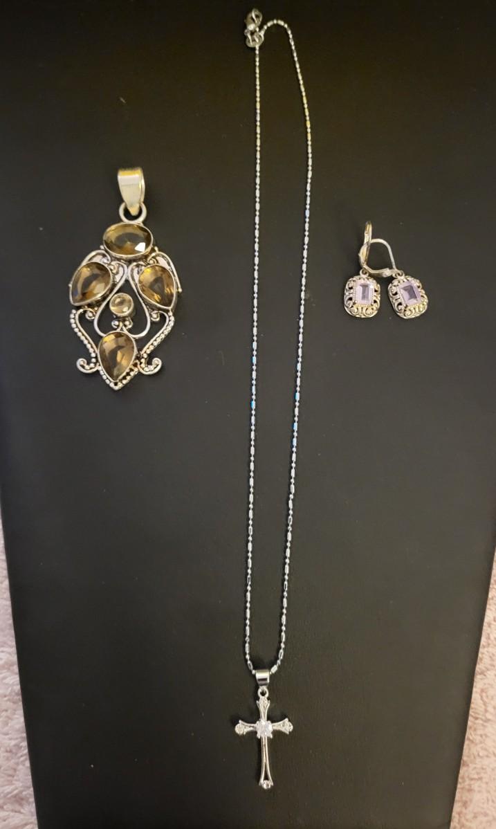 STERLING SILVER PENDANT, EARRINGS AND NECKLACE 18g