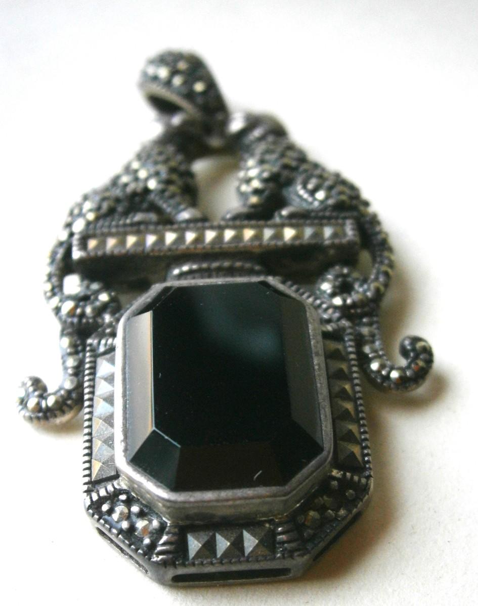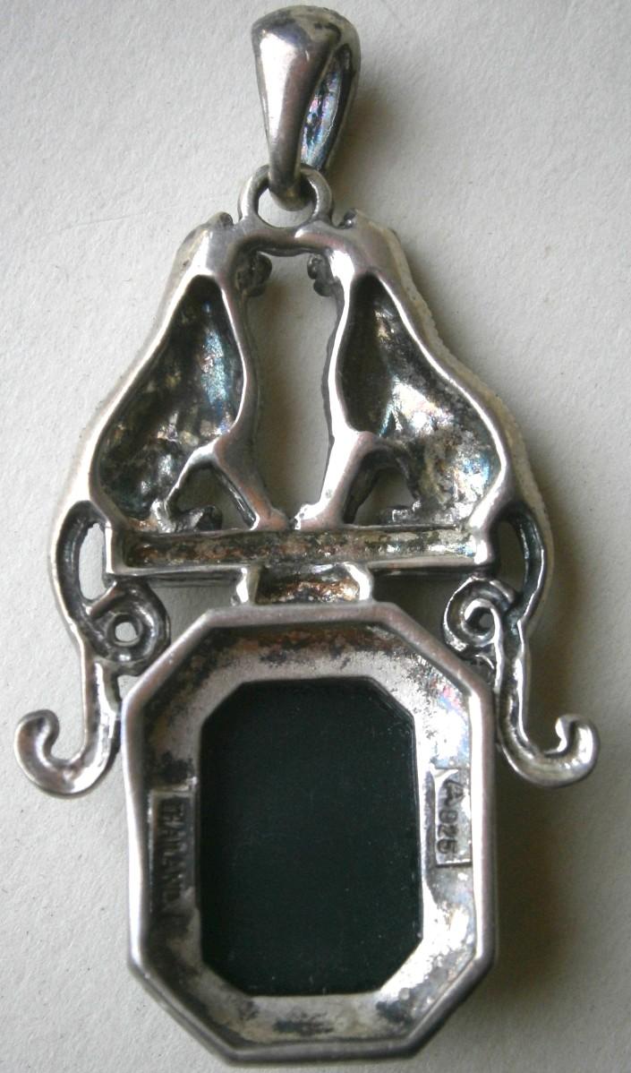 Vintage Sterling Silver Pendant with Tigers made in Thailand, 2 1/8 in. tall (including chain link), solid cast sterling silver.