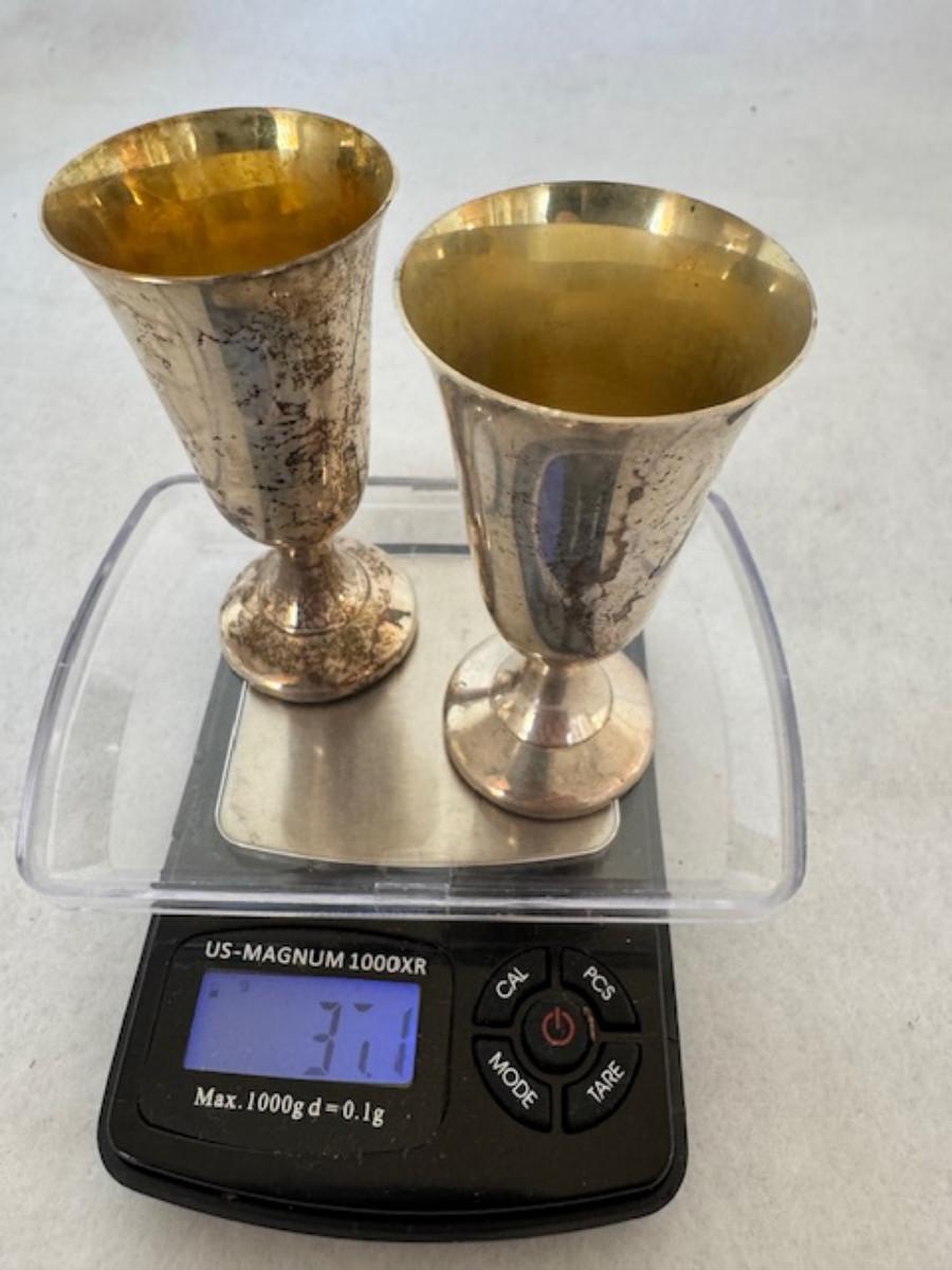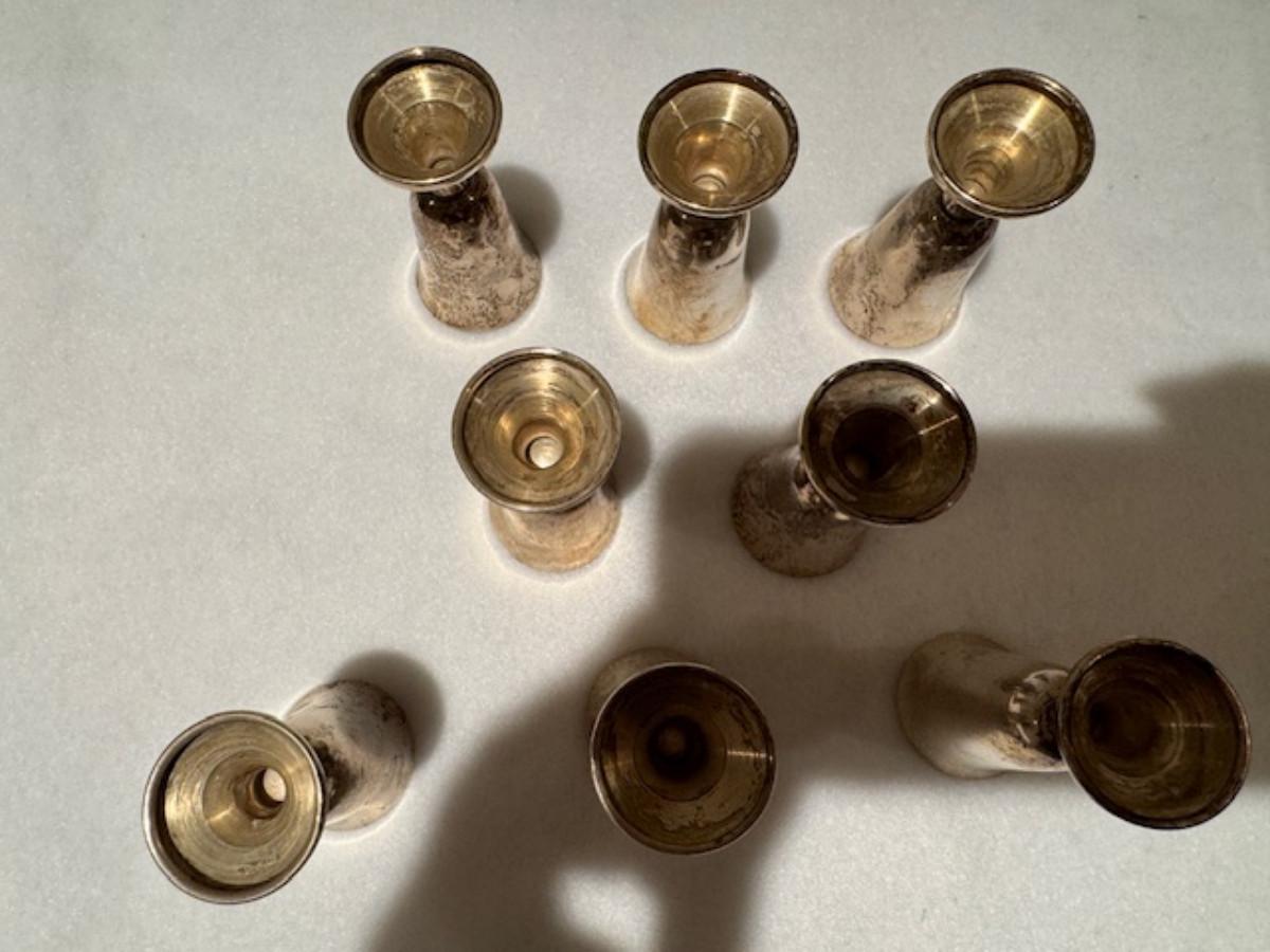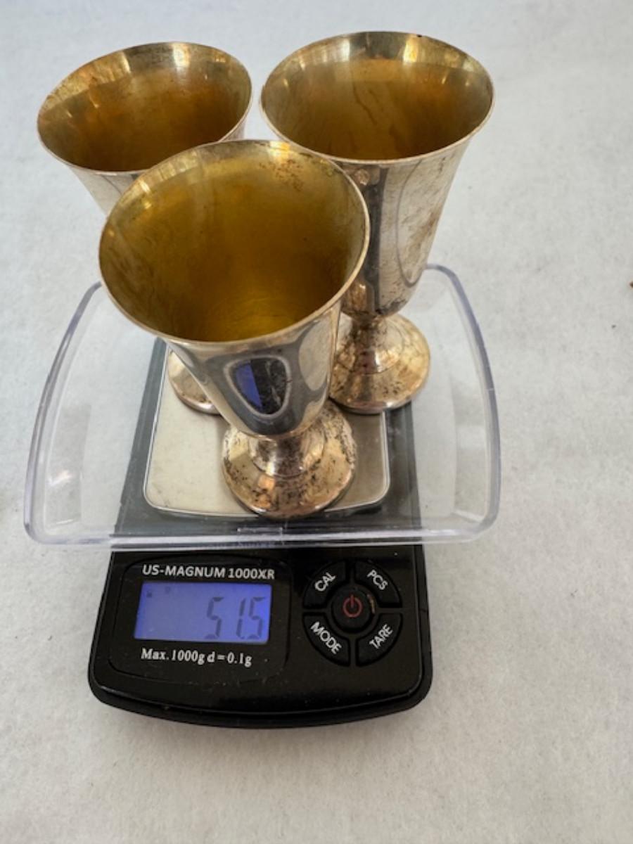 8 Cups 2 3/4" x 1 1/4" diameter top x 1" diameter base WEIGHT 51.5g + 53.7g + 35.1g