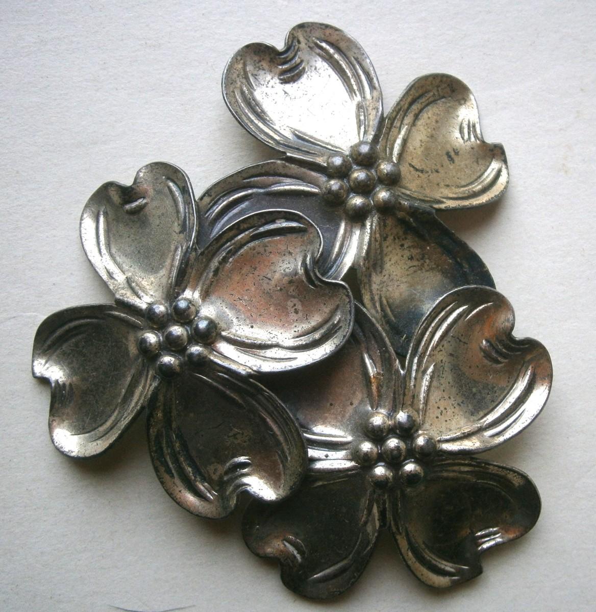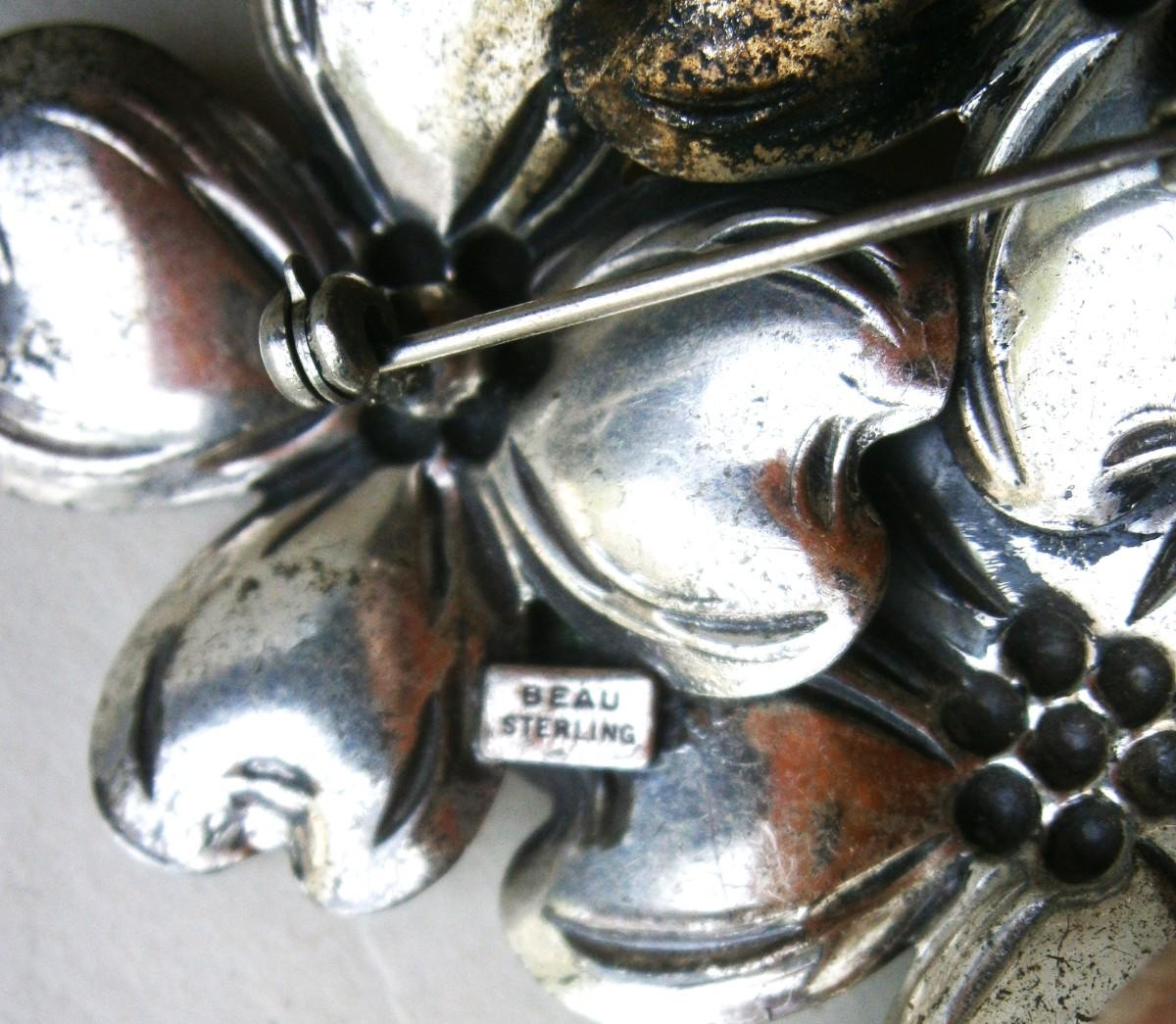 Large Vintage Floral Sterling Silver Pin signed BEAU, 2 1/4 in. wide.