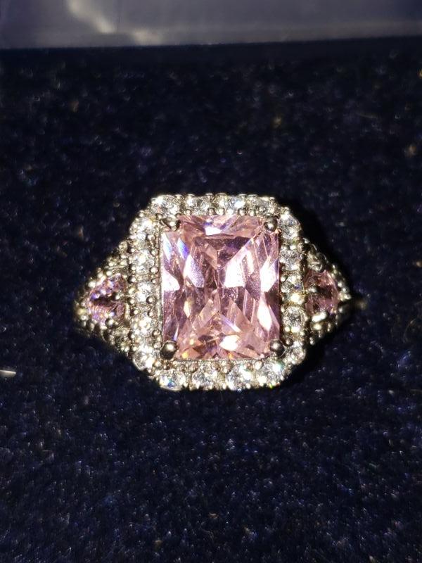 Sterling Silver Pink and White Cubic Zirconia Ring Size 7.5