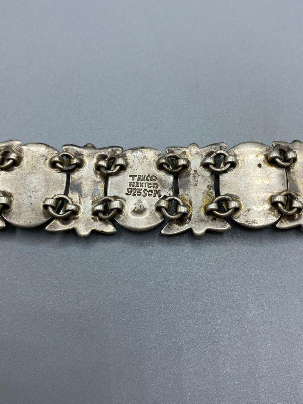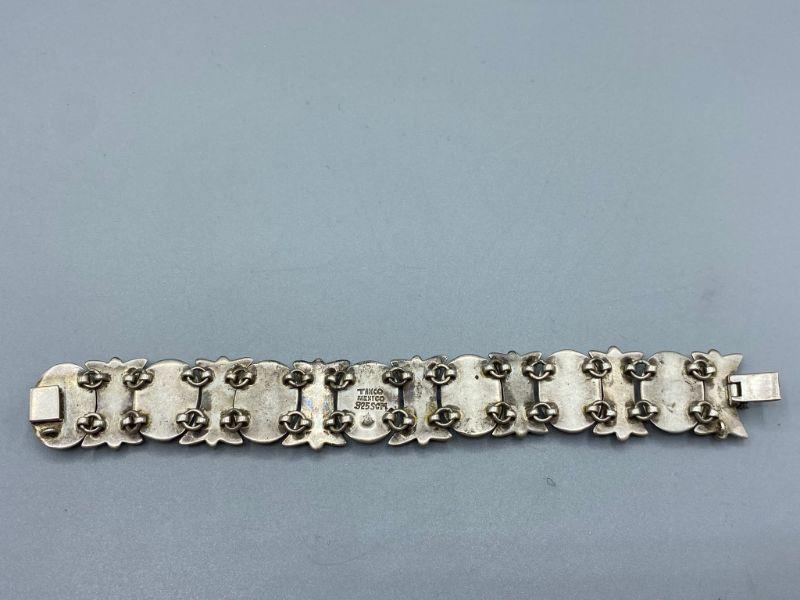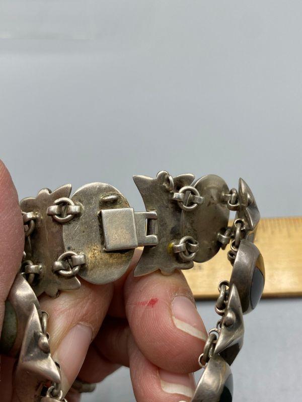 Sterling Silver & Polished Stone Chunky Link Bracelet Taxco Mexico