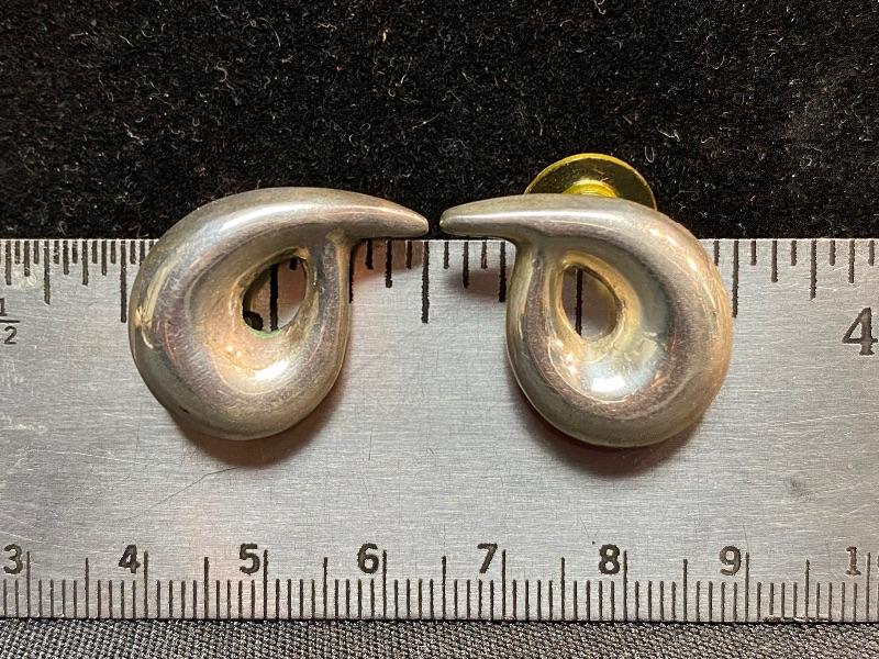 Sterling silver twist earrings. For pierced ears. 1" in size. Made in Mexico. Stamped on the back.