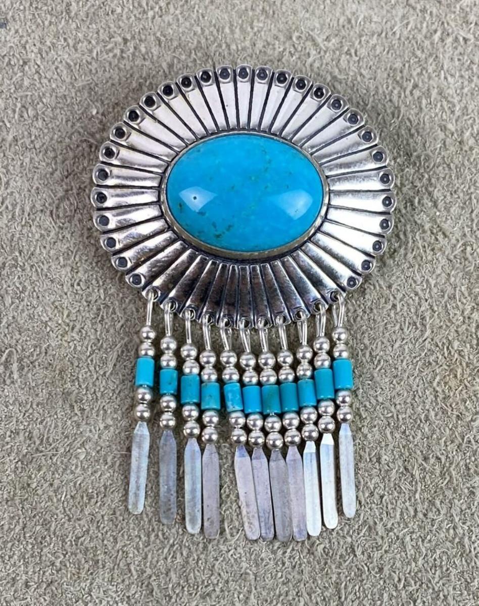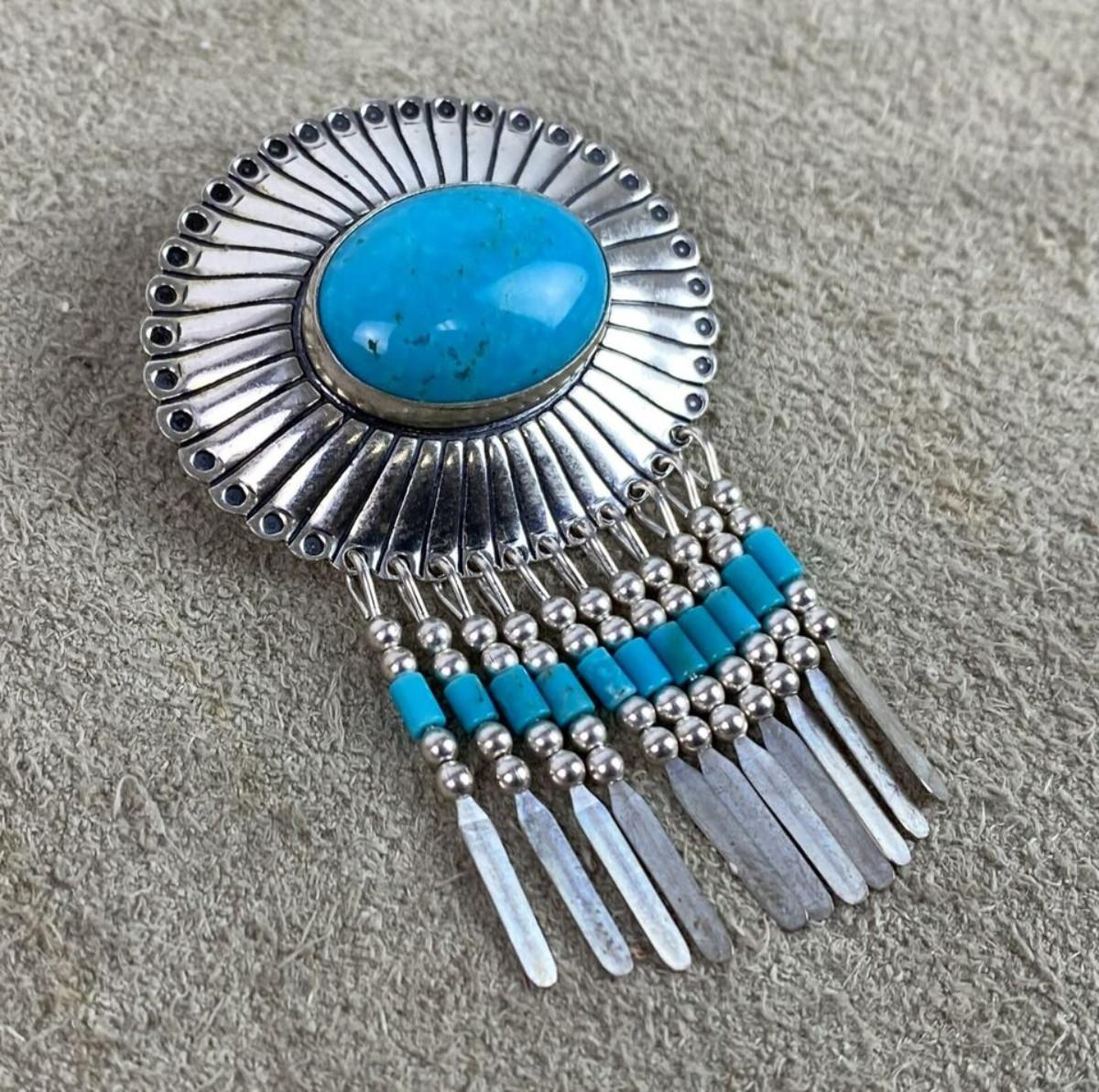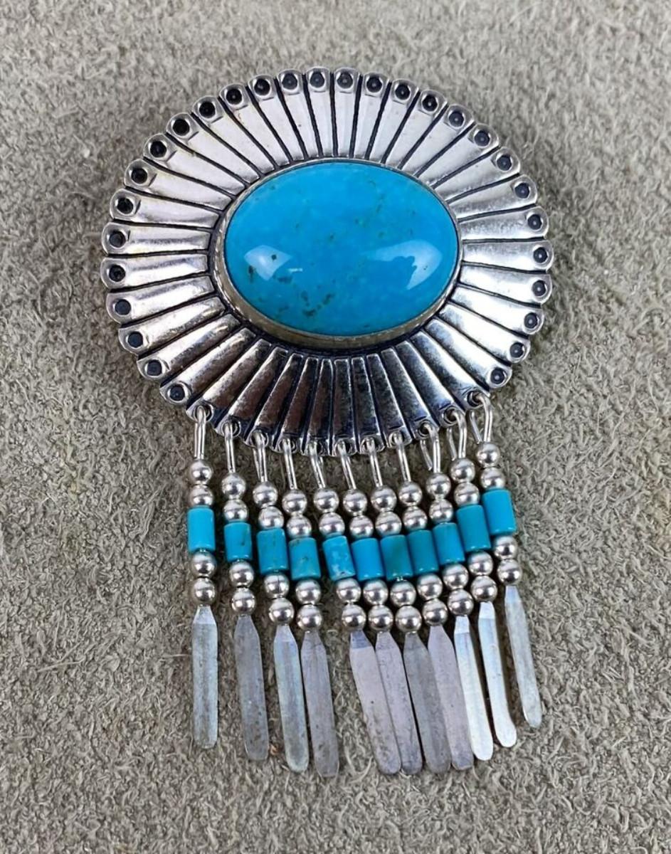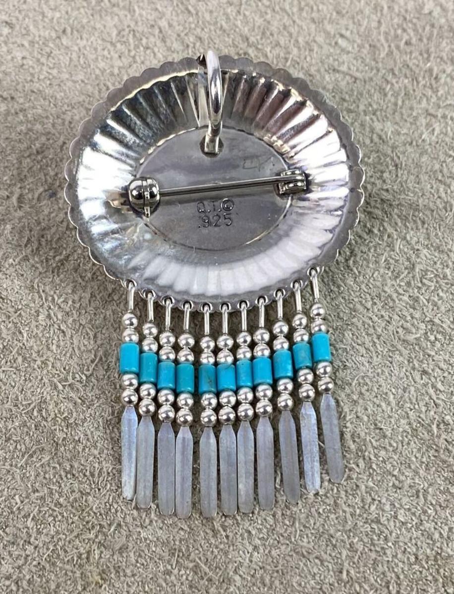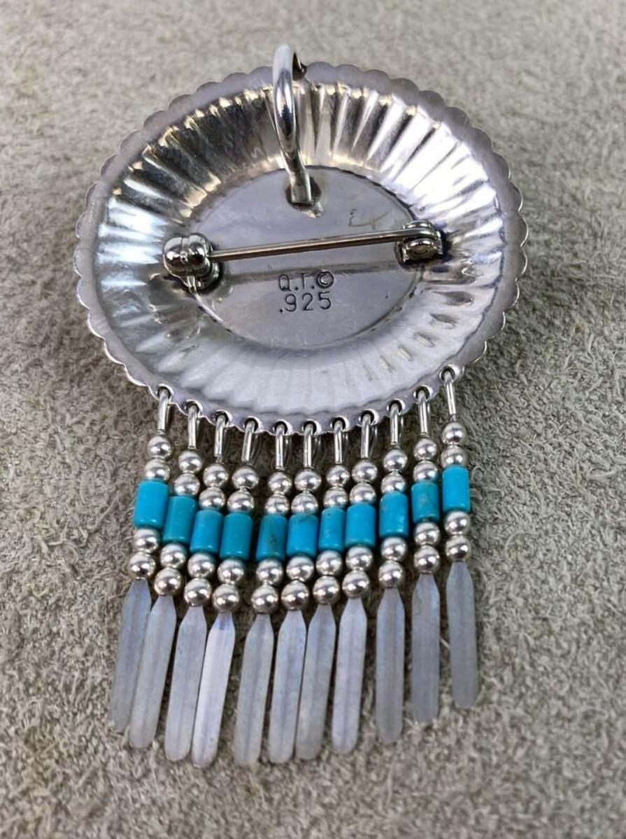 Sterling Silver Q.T. Quoc Turquoise Concho Pendant Pin