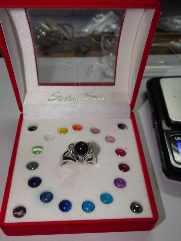 Sterling Silver Rainbow Stone Adjustable Ring
