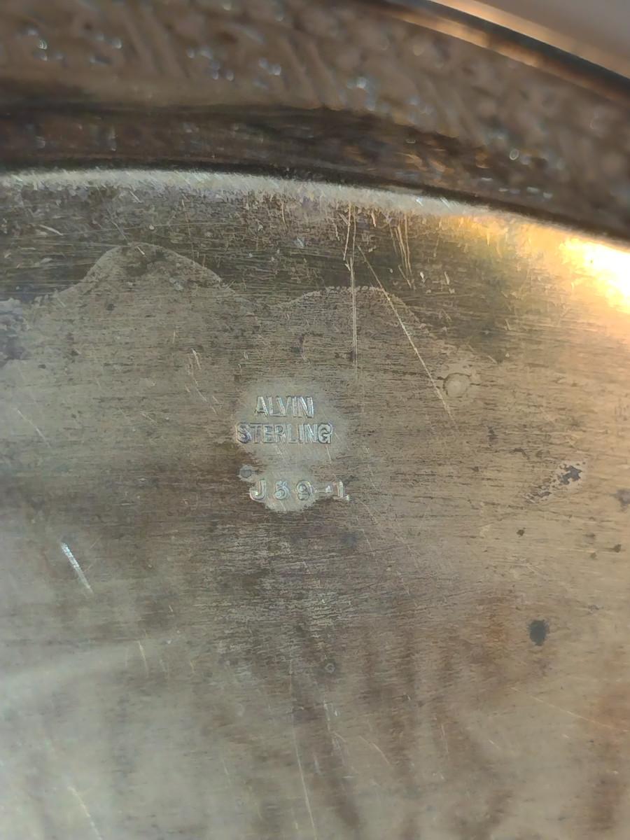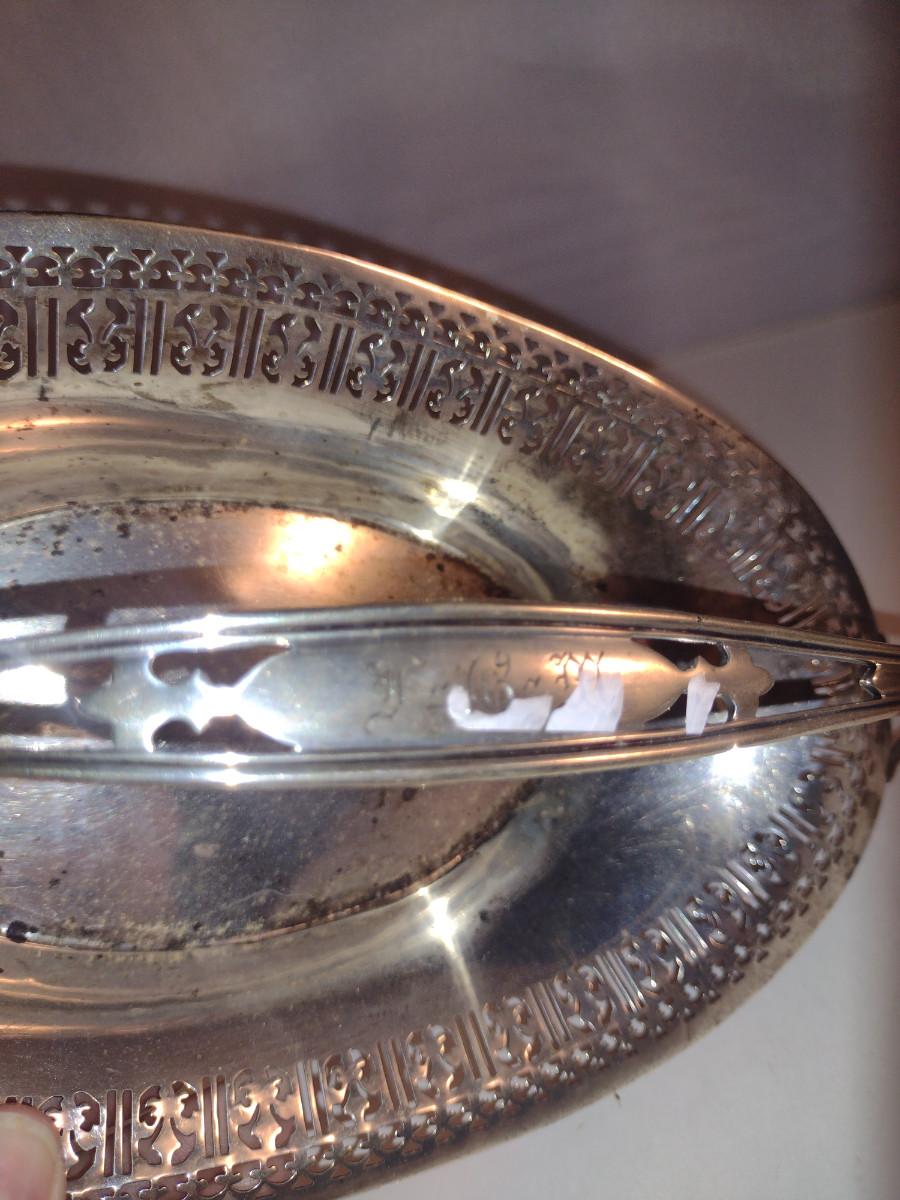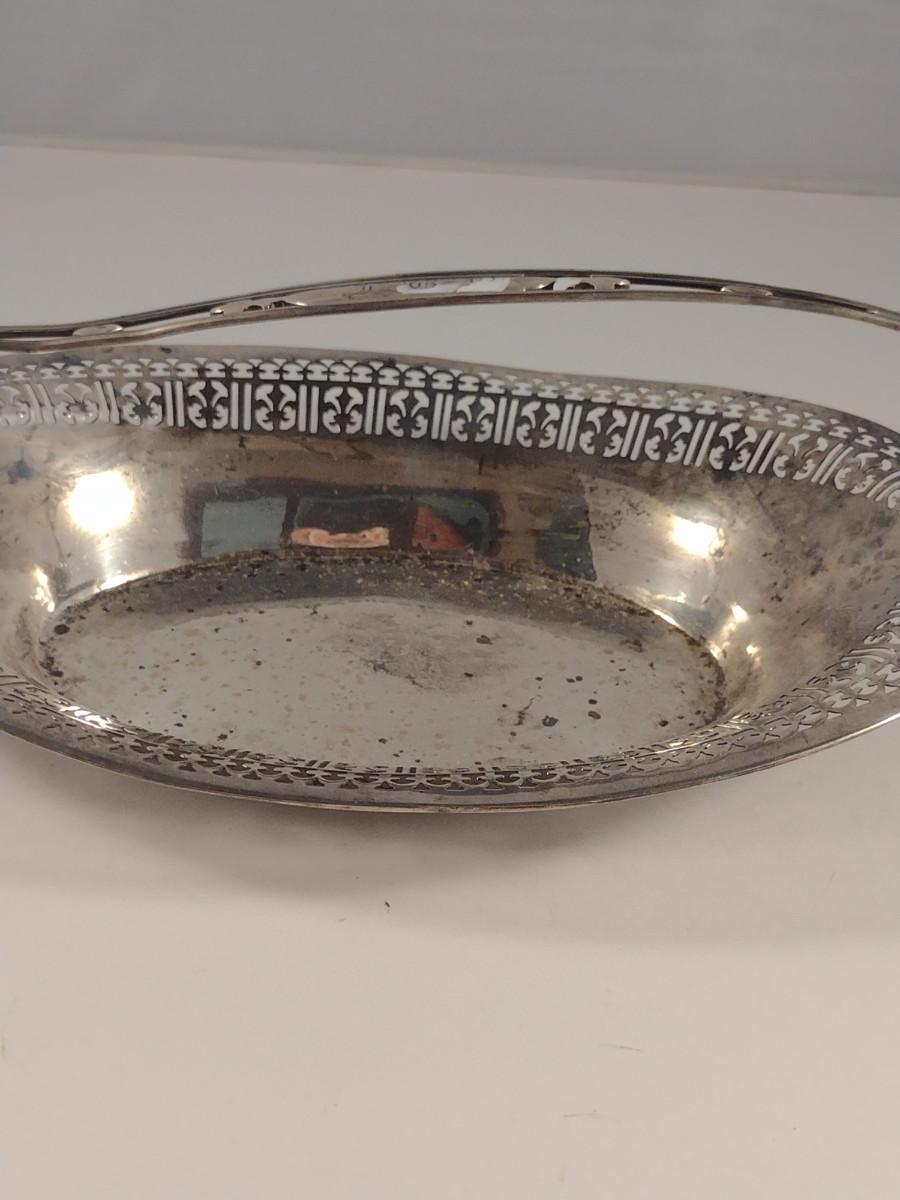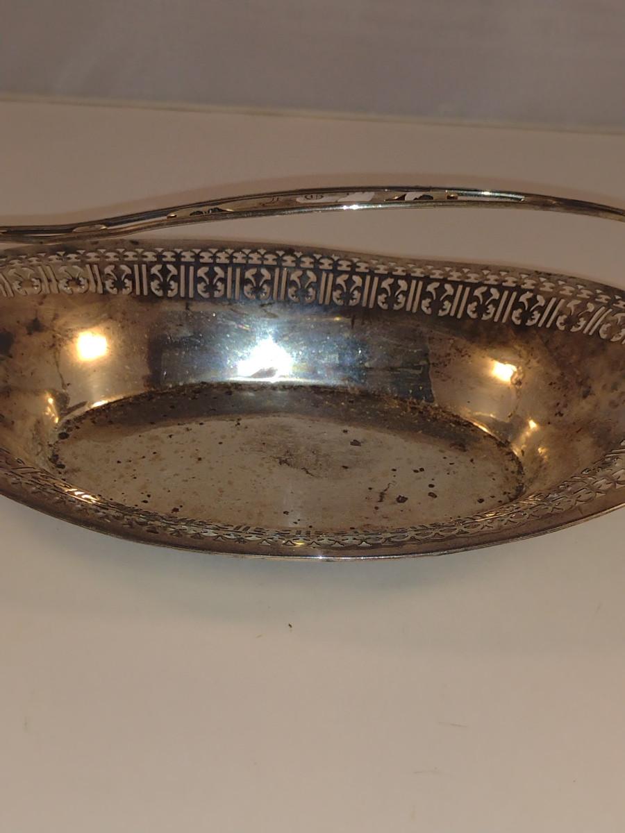 Sterling Silver Reticulated Dish with Handle- Approx Total Weight 210 Grams. Handle is slightly bent and has been monogrammed.
