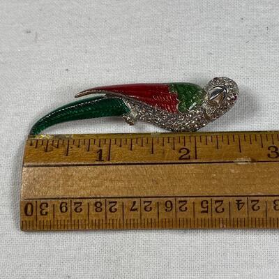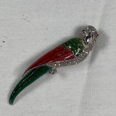 Sterling Silver Rhinestone & Enamel Parrot Brooch by Jenna Nicole