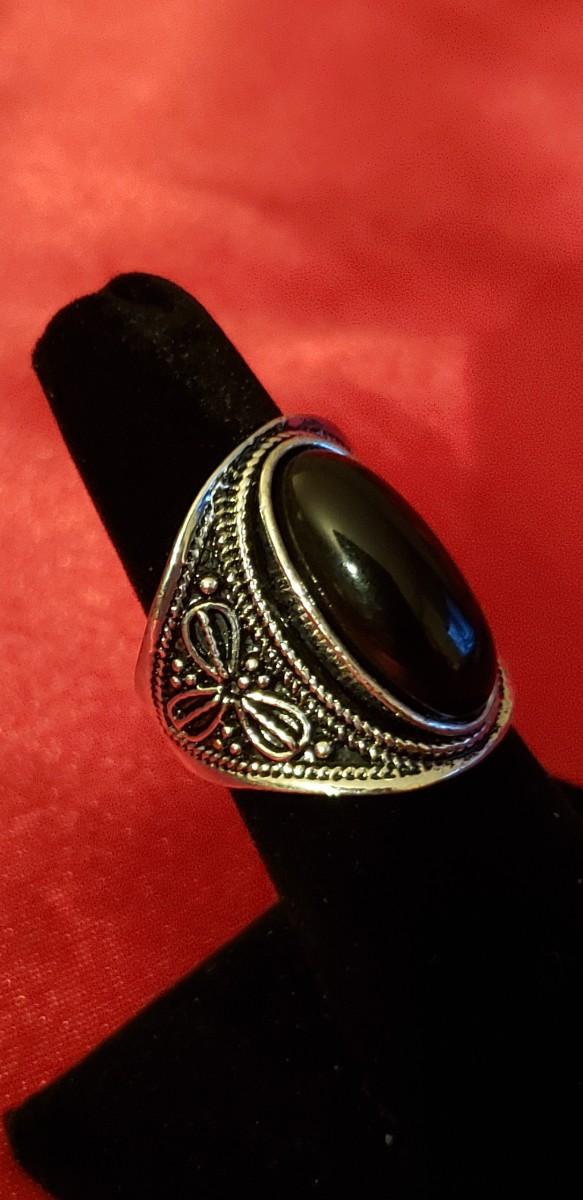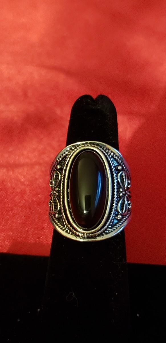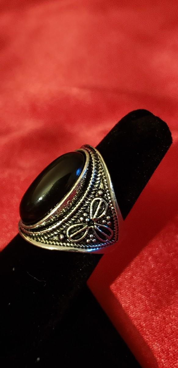 Vintage Sterling silver Onyx stone ring 13.2g