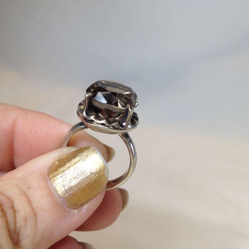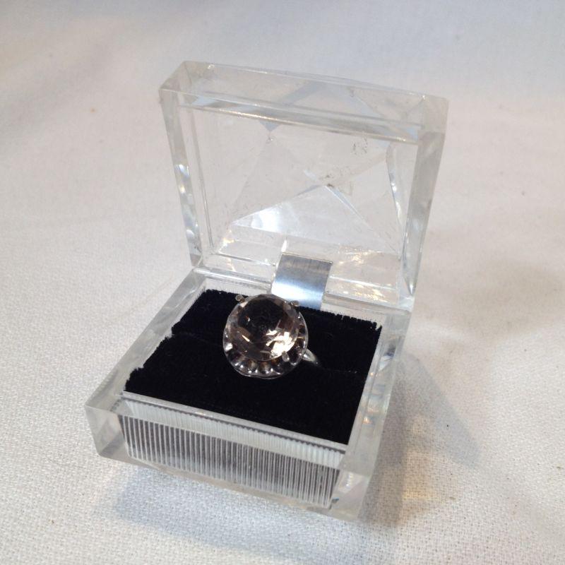 This lot is a wonderful Sterling Silver Ring with a BIG Gem that looks to be a Smokey Topaz. It ring is marked 925. The stone is a little loose but overall in very good condition. Our ring sizer says it is a 5.. Comes in a nice Lucite ring box. The starting bid is $10.00.