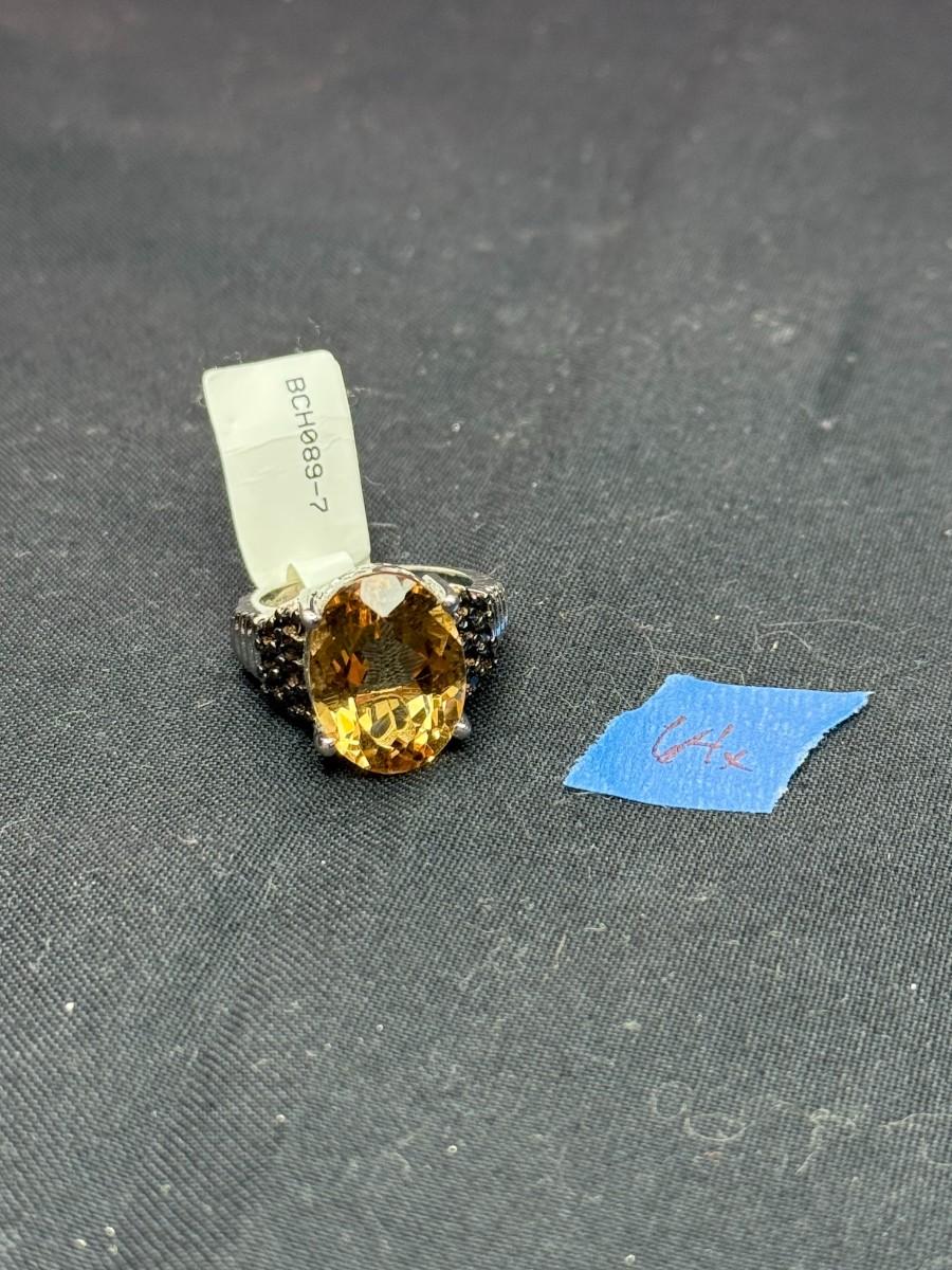 sterling silver ring featuring a large, oval-cut citrine gemstone