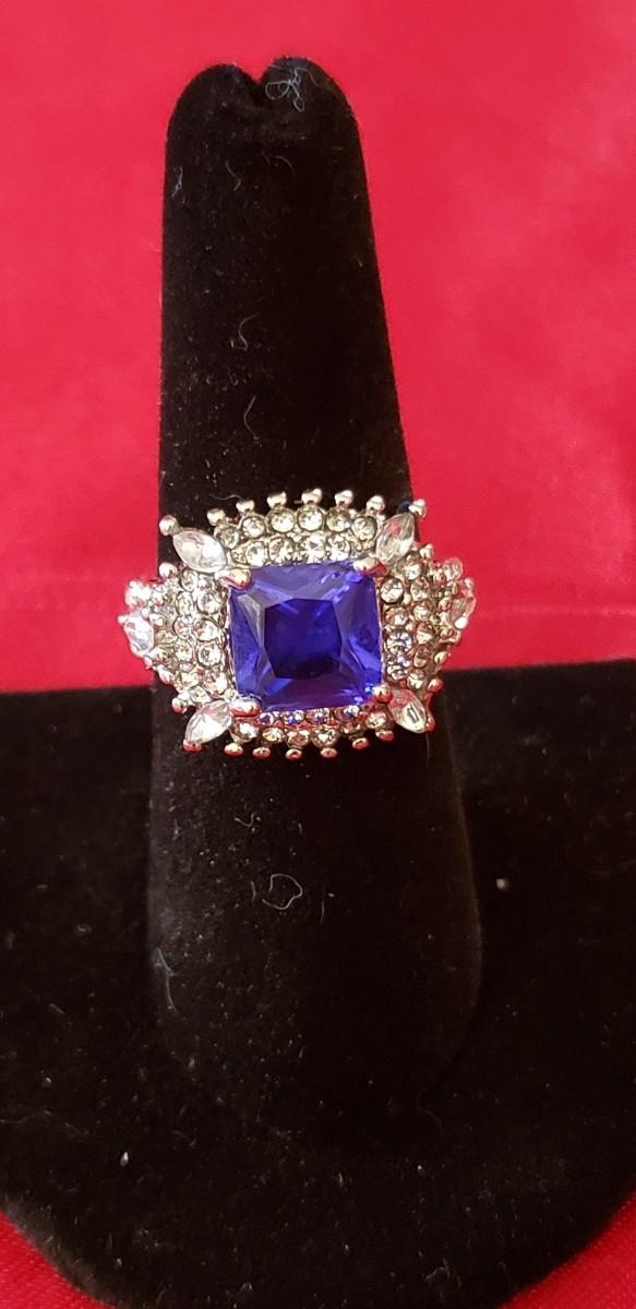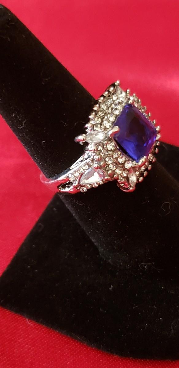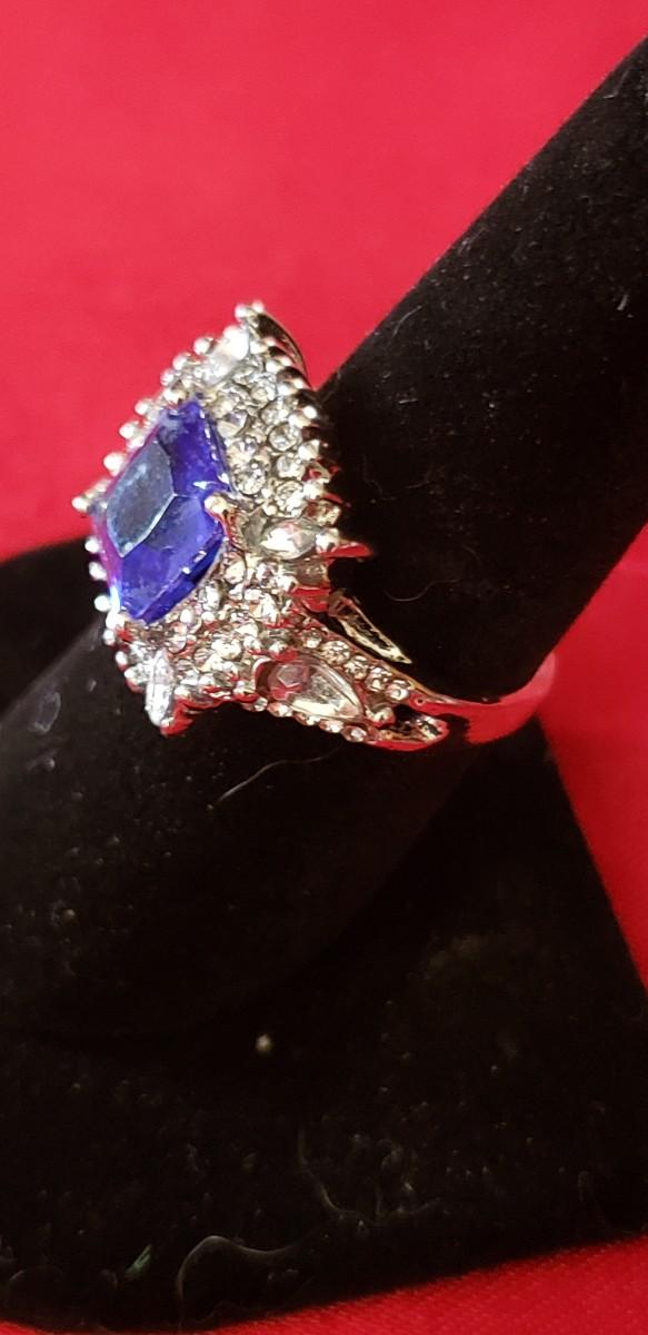 Stunning white sapphire and  blue sapphire Sterling silver ring size 7