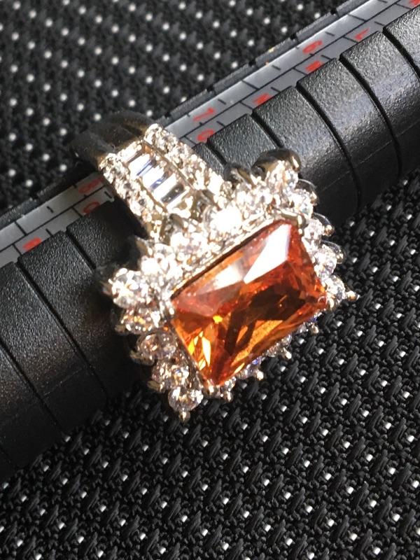 Sterling Silver Ring Size 8 Square Amber Center Stone Lot #4