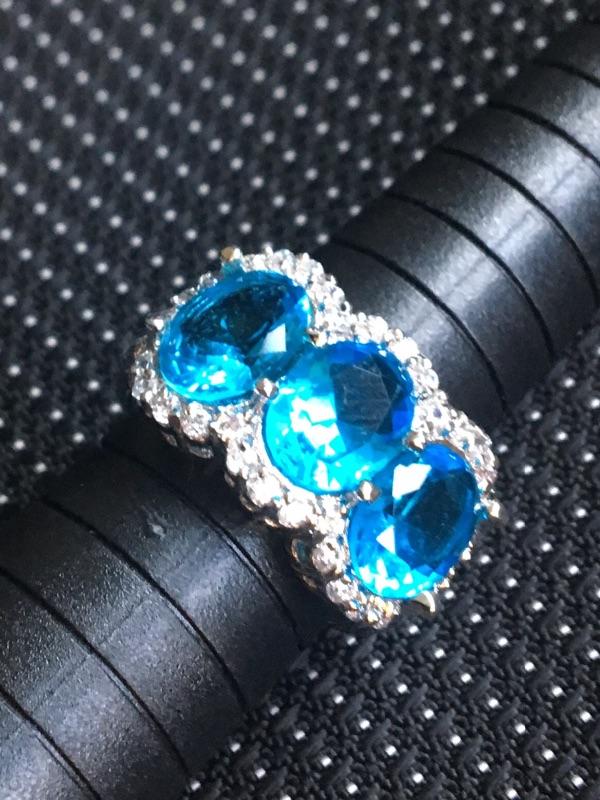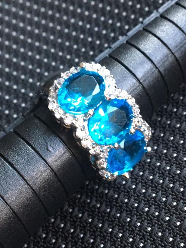Sterling Silver Ring Size 9 With Blue Oval Stones Lot #10