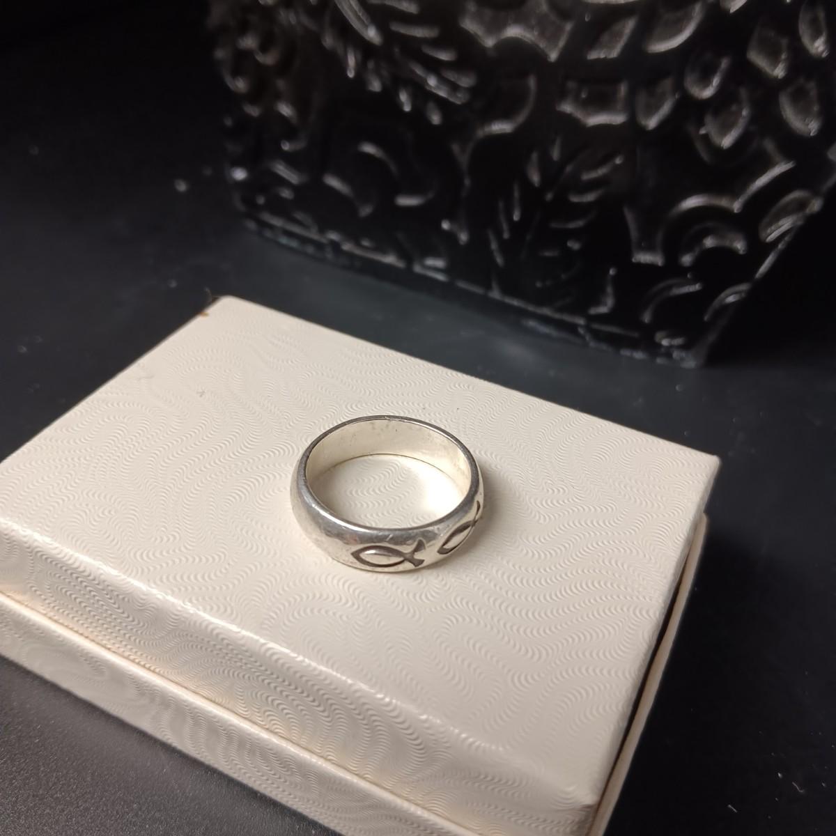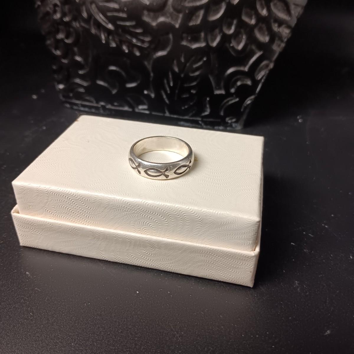 STERLING SILVER RING WITH ICHTHYS MARKED "BSD" 6.07g SIZE 8 1/2