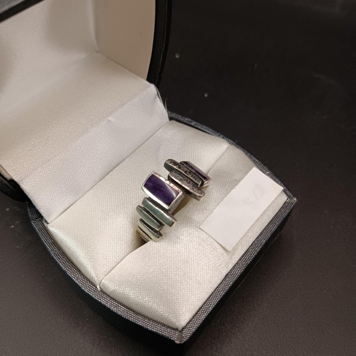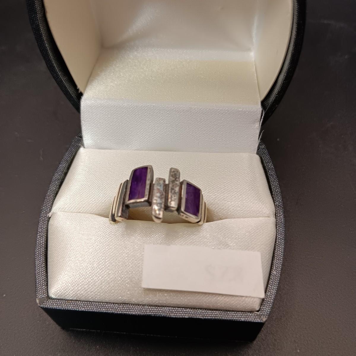STERLING SILVER RING WITH PURPLE STONES 4.75g SIZE 7 3/4