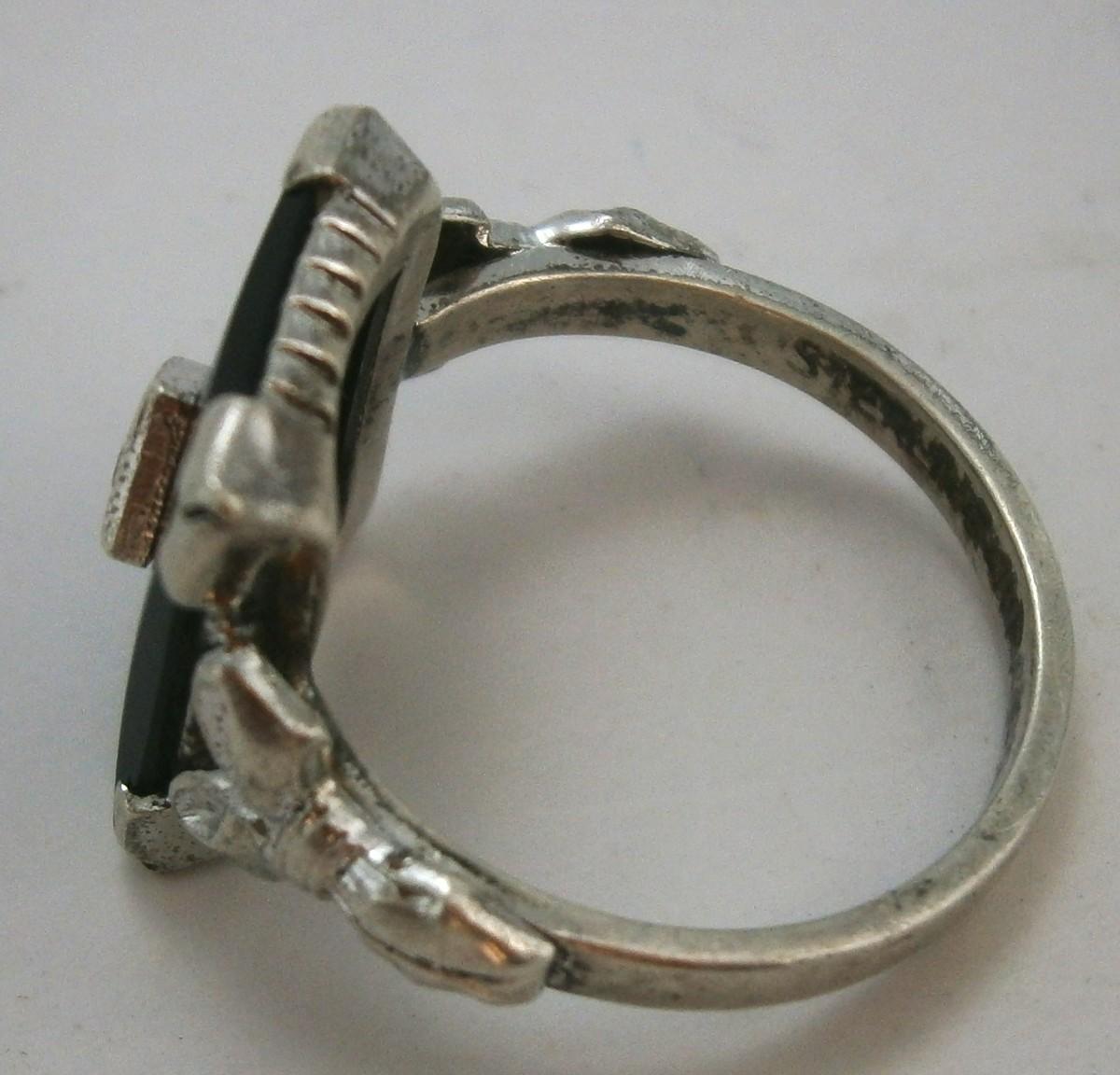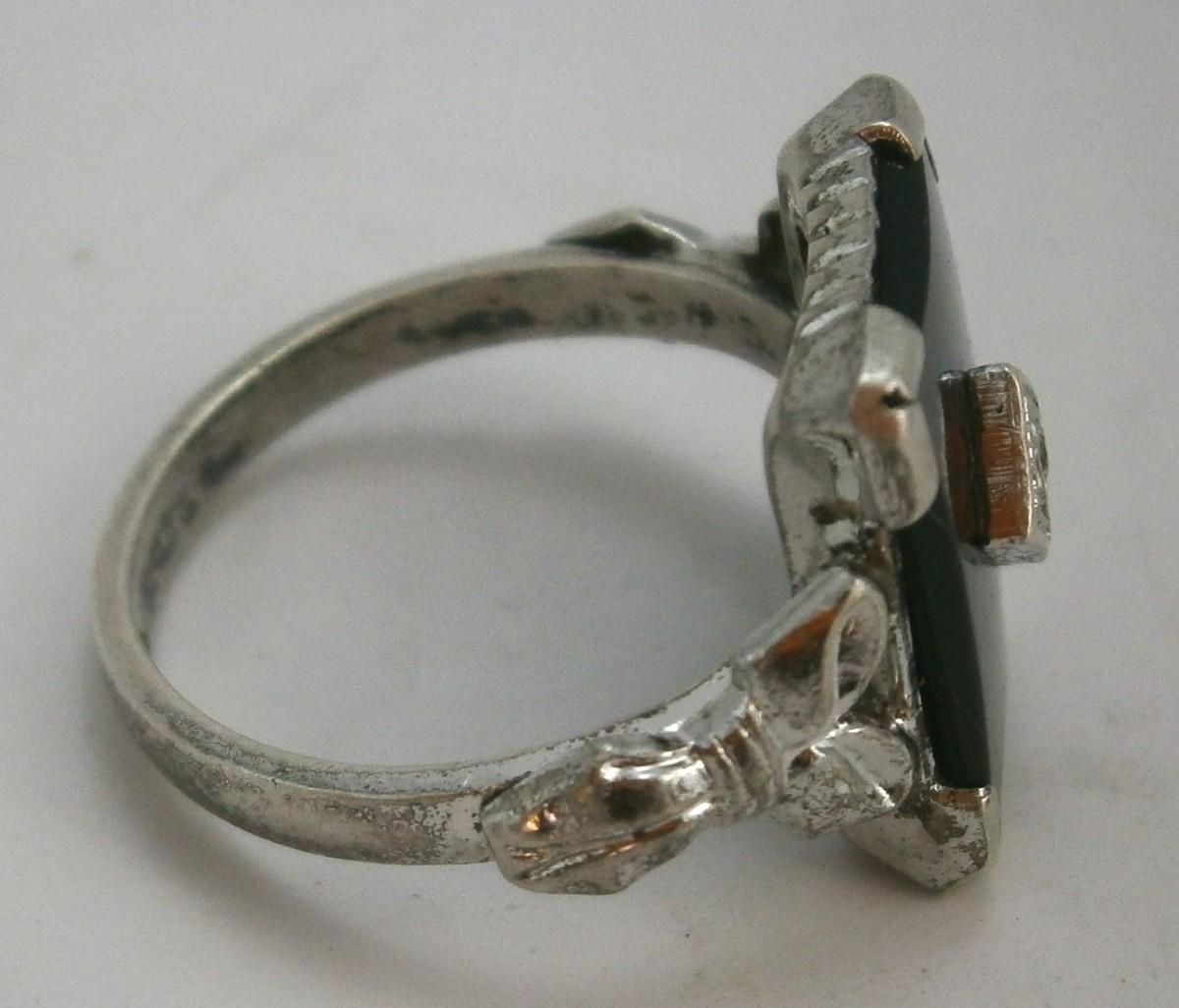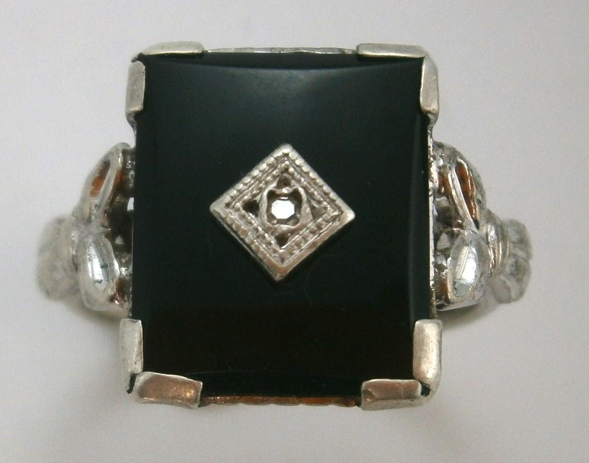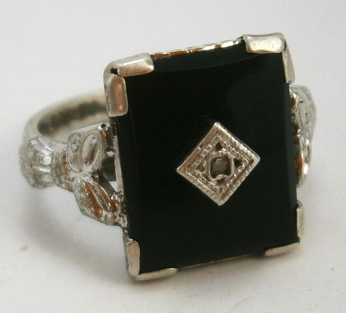 Sterling Silver Ring with Small Diamond on Onyx, vintage, size 3 1/2