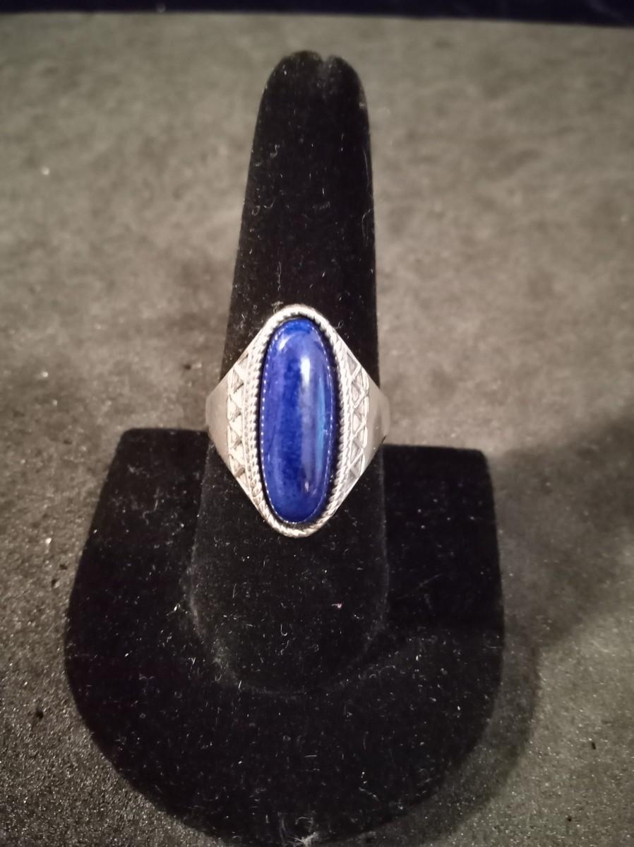 STERLING RING WITH A BLUE STONE IS SIZE 9 WEIGHT 8.54 g